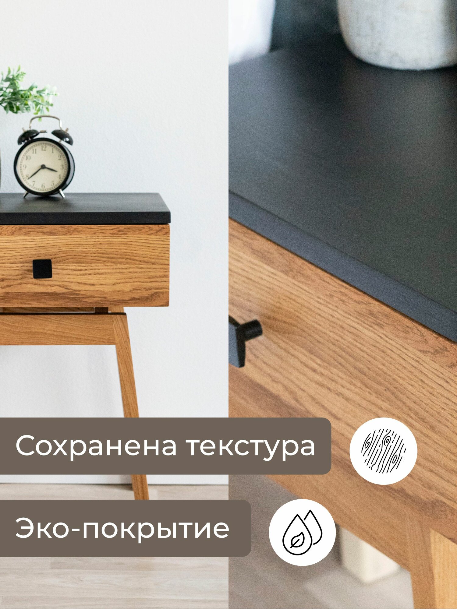 СохранитьТумба прикроватная Hugo из натурального дерева. Высота 50 см. Парящий корпус 30х39х15 см. Цвет: можжевельник, черный. интересное: