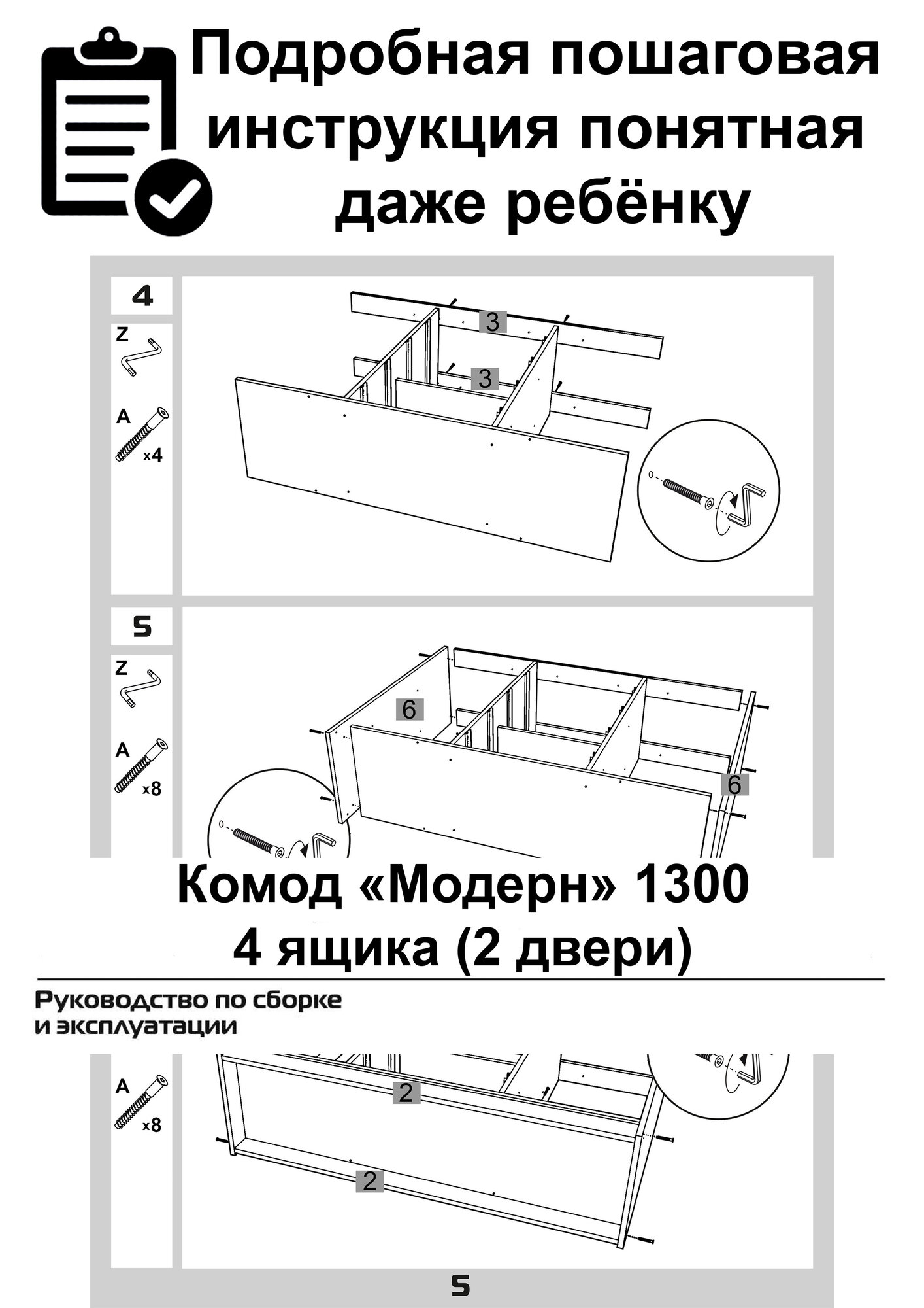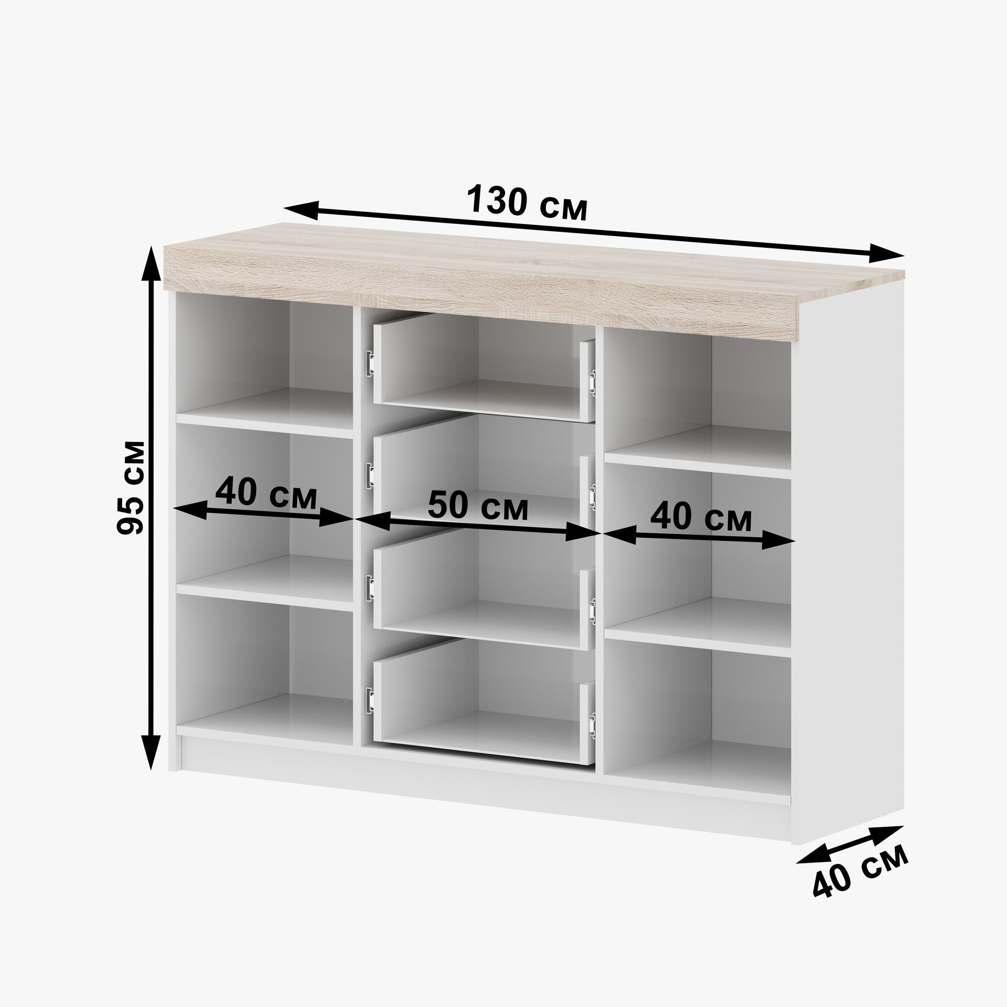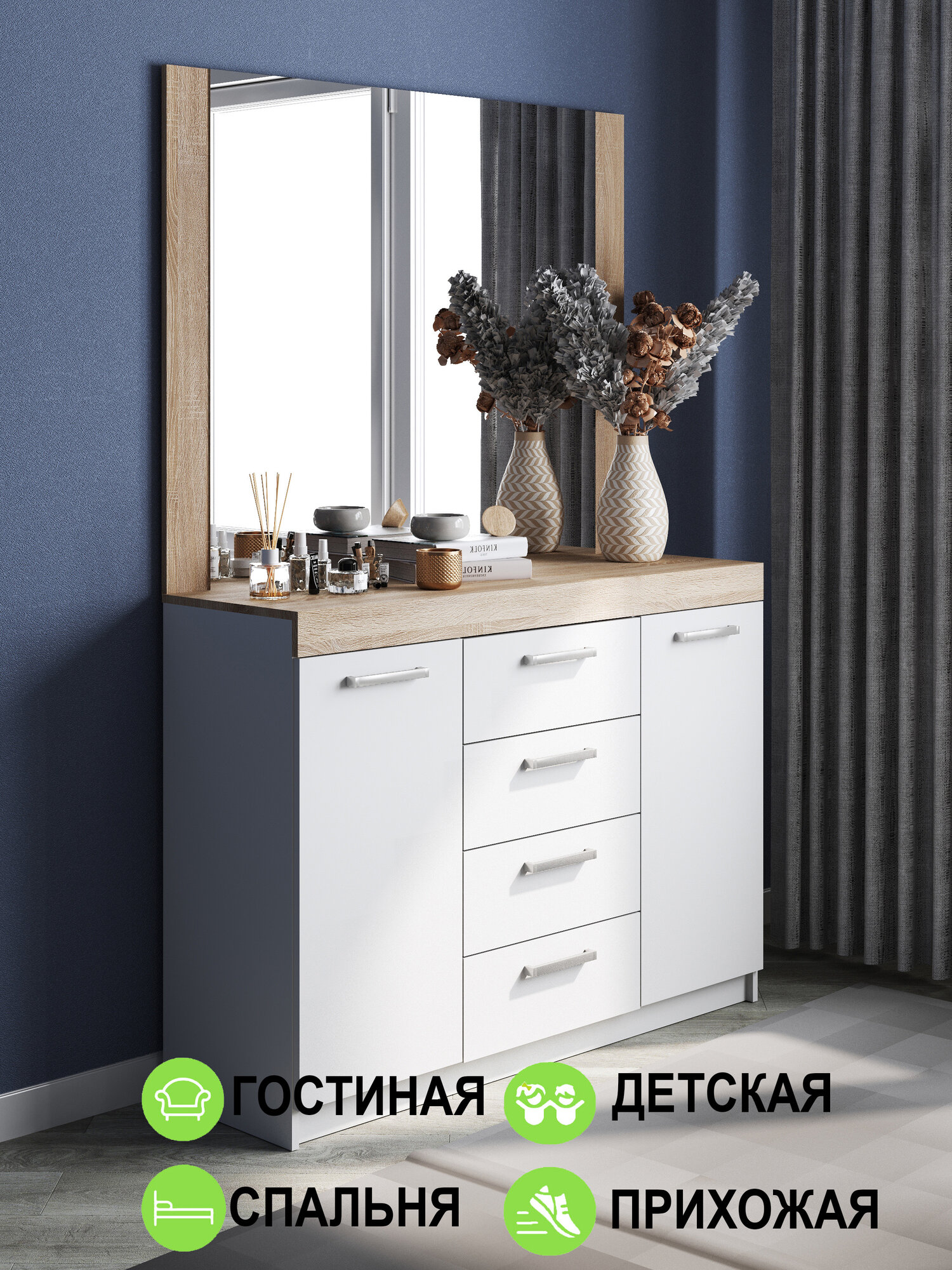 Комод "Модерн" 1300-4 ящика (2 двери), В*Ш*Г (см) 95х130х40, ЛДСП, белый / дуб сонома интересное: