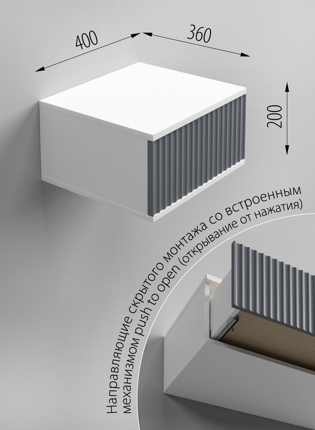 Прикроватная тумбочка REGENT-style птплион", 1 ящик, темно-серая, белый интересное: