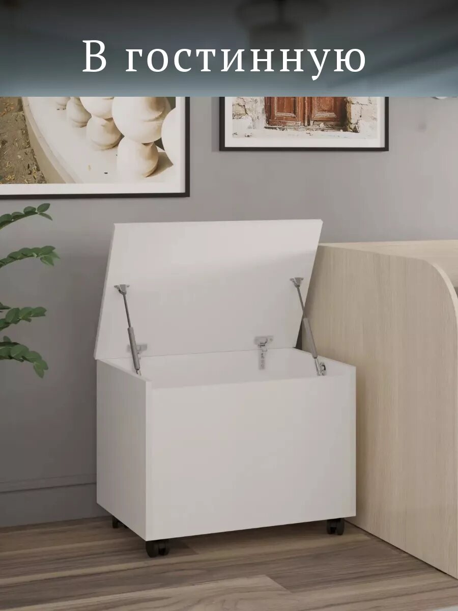 Тумба на колесиках с откидной крышкой, ЛДСП, белая, 60 см x 40 см интересное:
