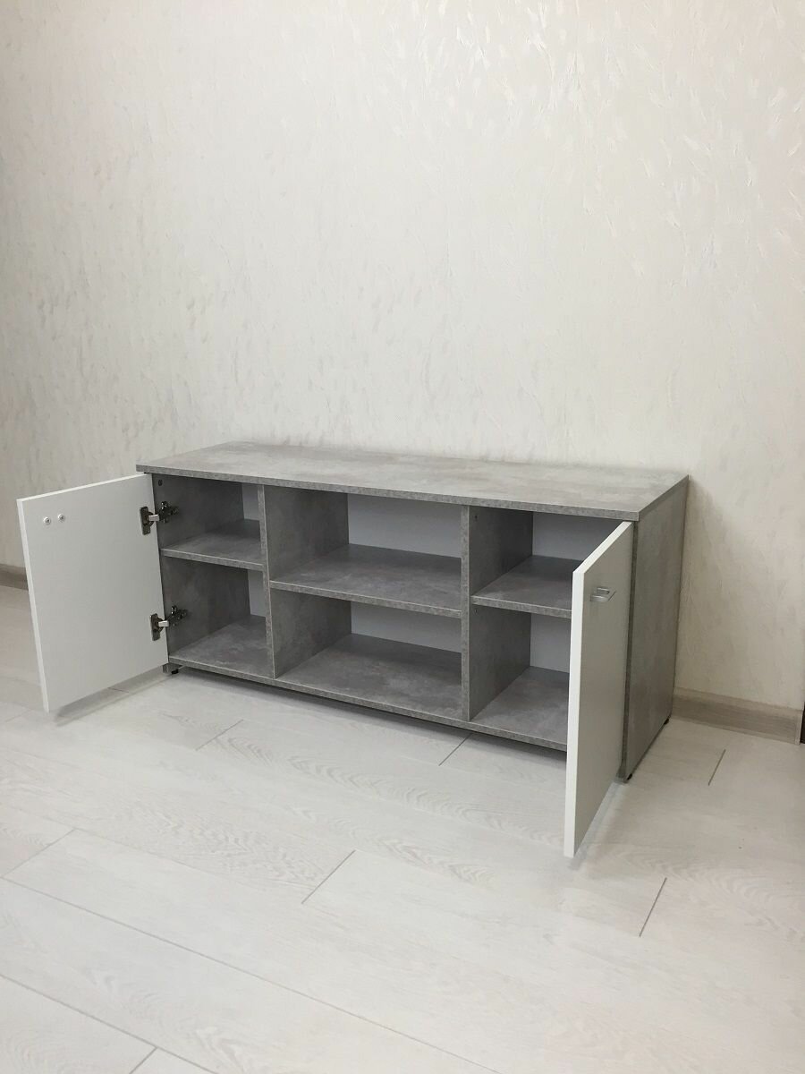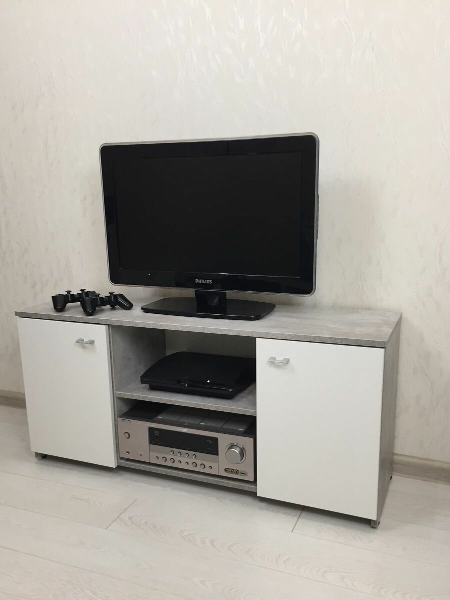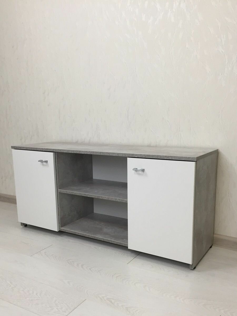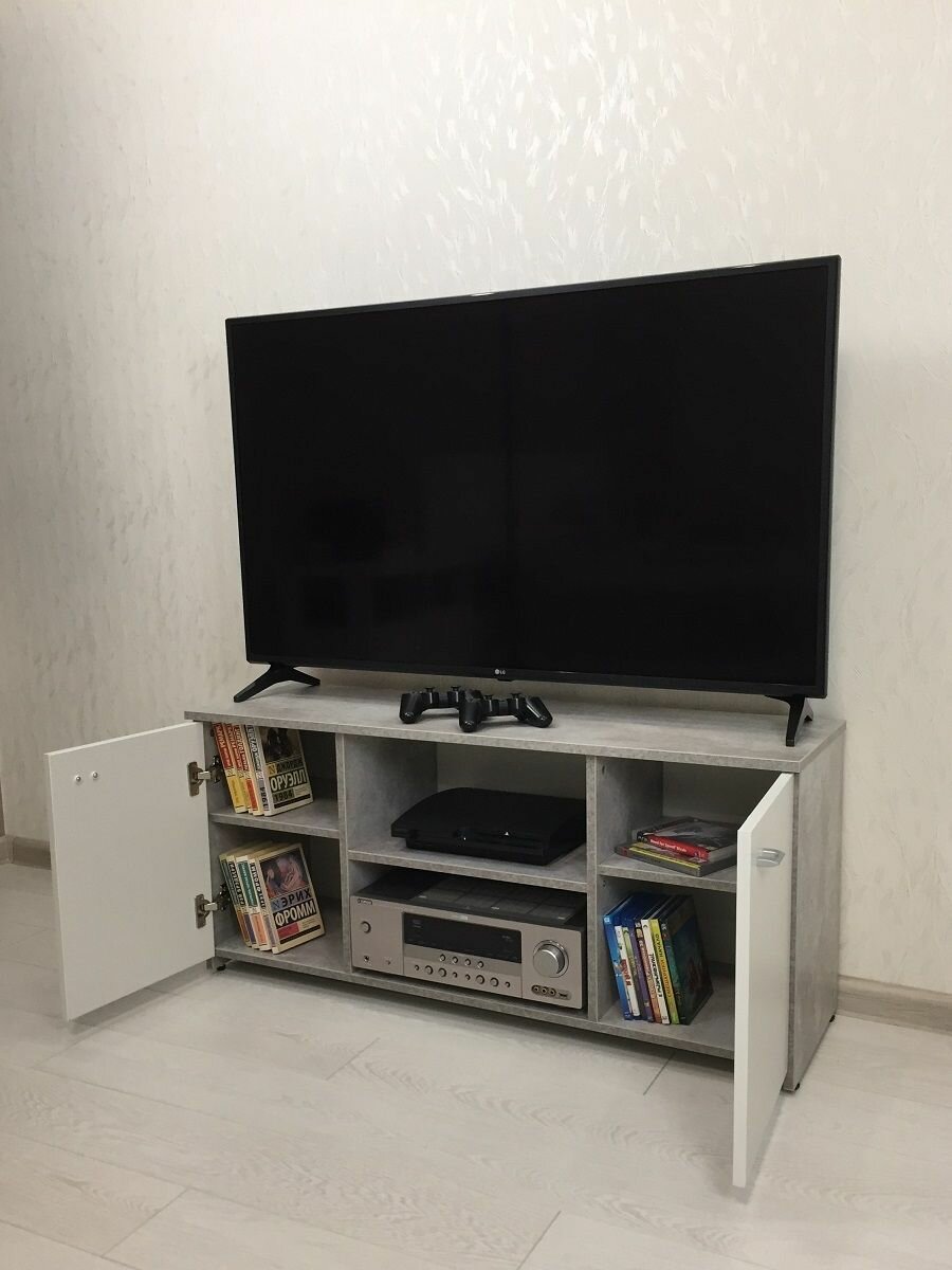 Тумба под телевизор напольная Смайл ТВ с доводчиками, с полками, с дверцами, закрытая, 111х34х51см, серая, Бетон