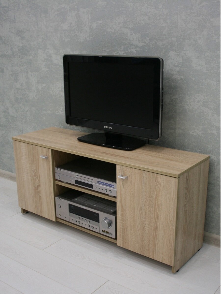 Купить Тумба под телевизор напольная Смайл ТВ с доводчиками, с полками, с дверцами, закрытая, 111х34х51см, бежевая, Дуб Сонома