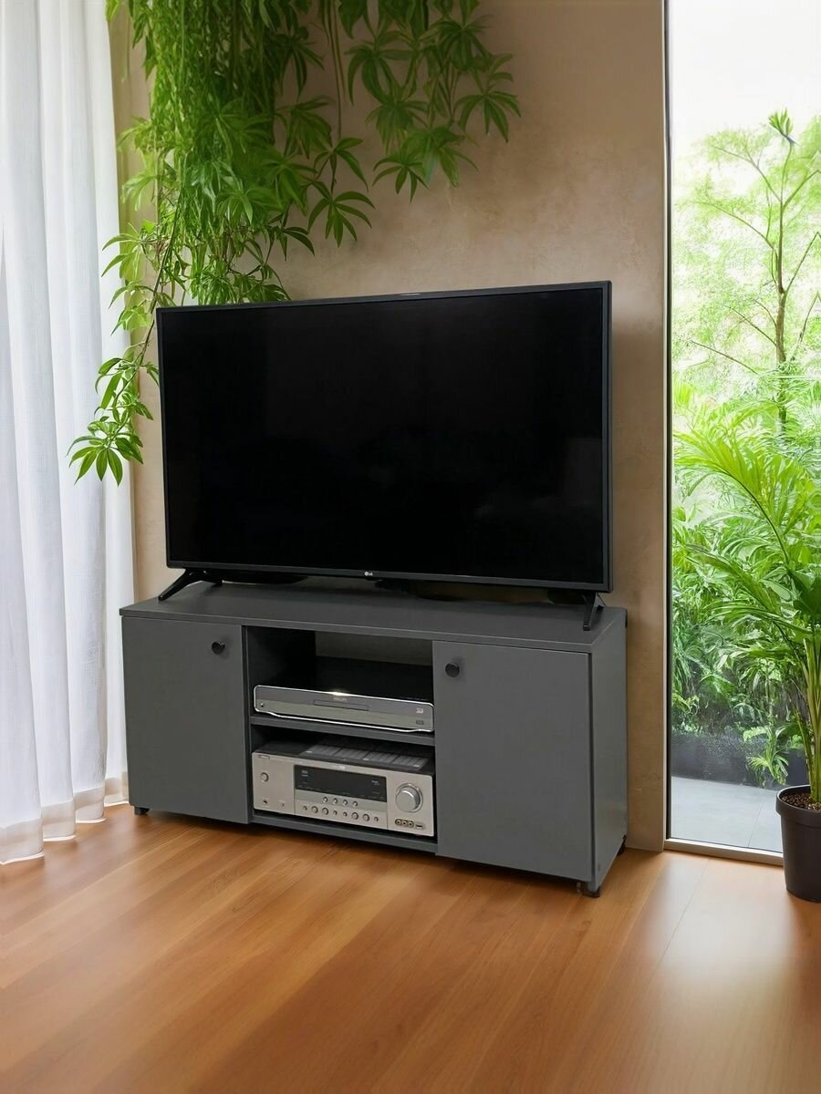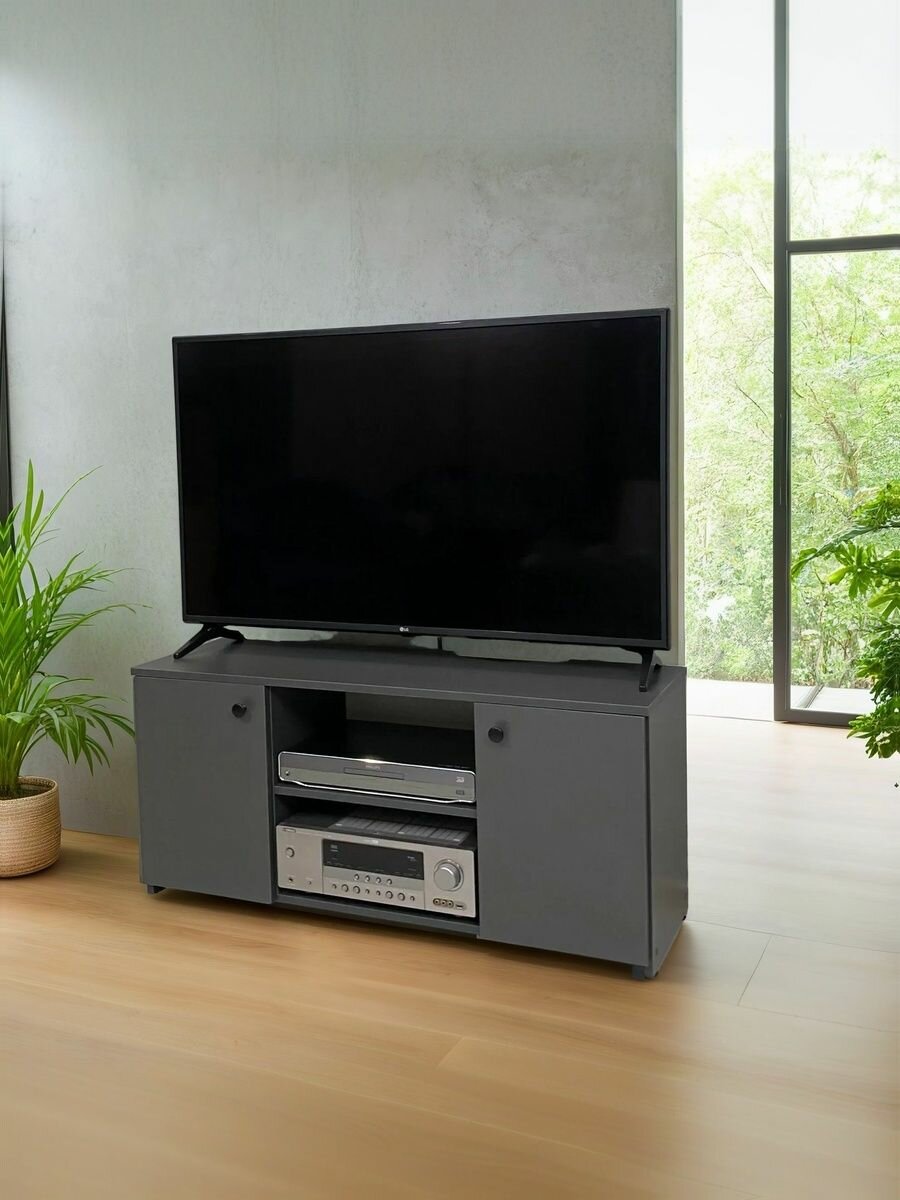 Купить Тумба под телевизор напольная Смайл ТВ с доводчиками, с полками, с дверцами, закрытая, 111х34х51см, Антрацит