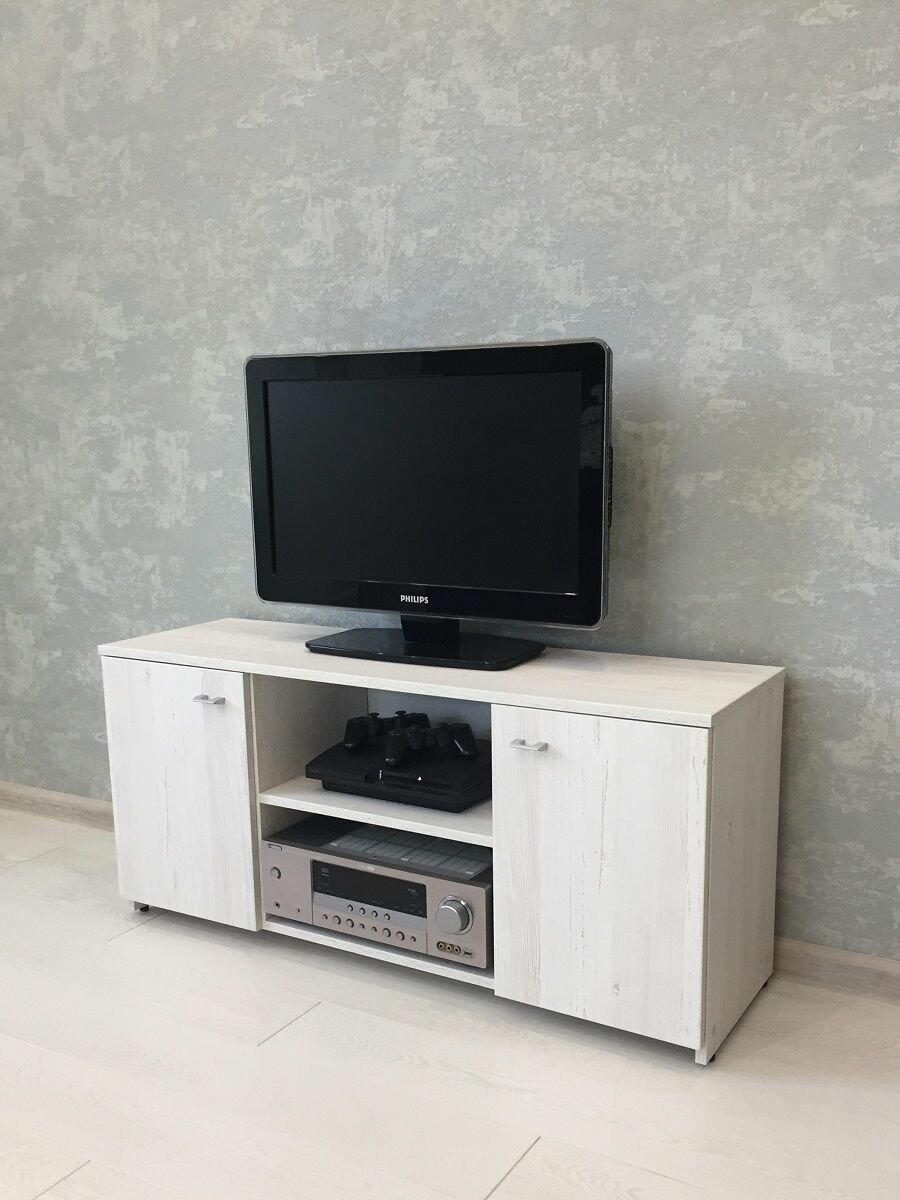 Купить Тумба под телевизор напольная Смайл ТВ с доводчиками, с полками, с дверцами, закрытая, 111х34х51см, Сосна Винтерберг