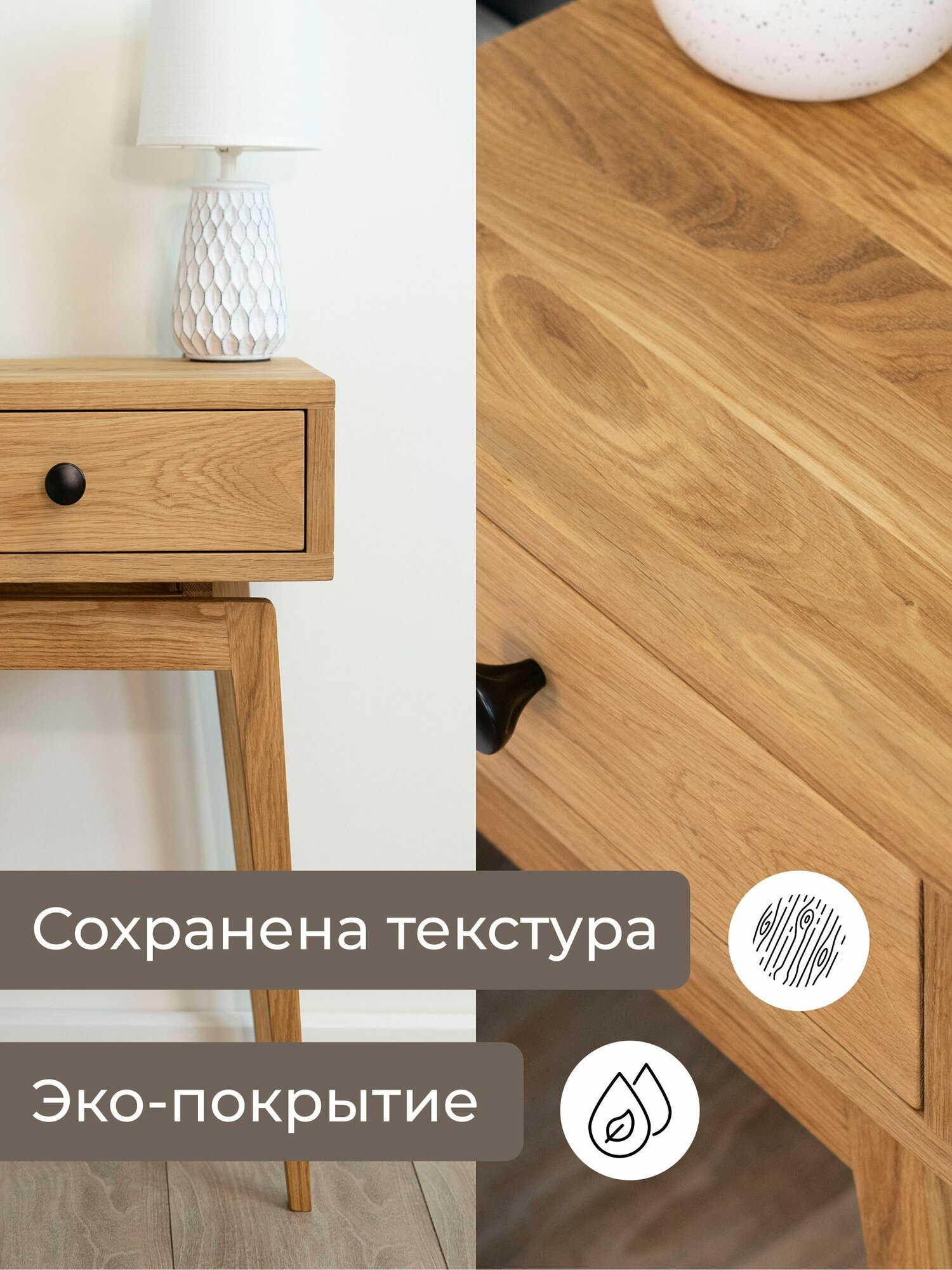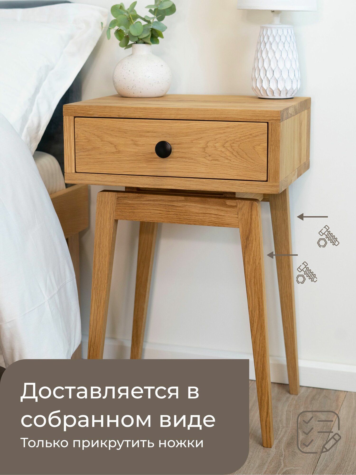 Тумба прикроватная Zolo из массива дуба. Высота 50 см. Парящий корпус 30х39 см.