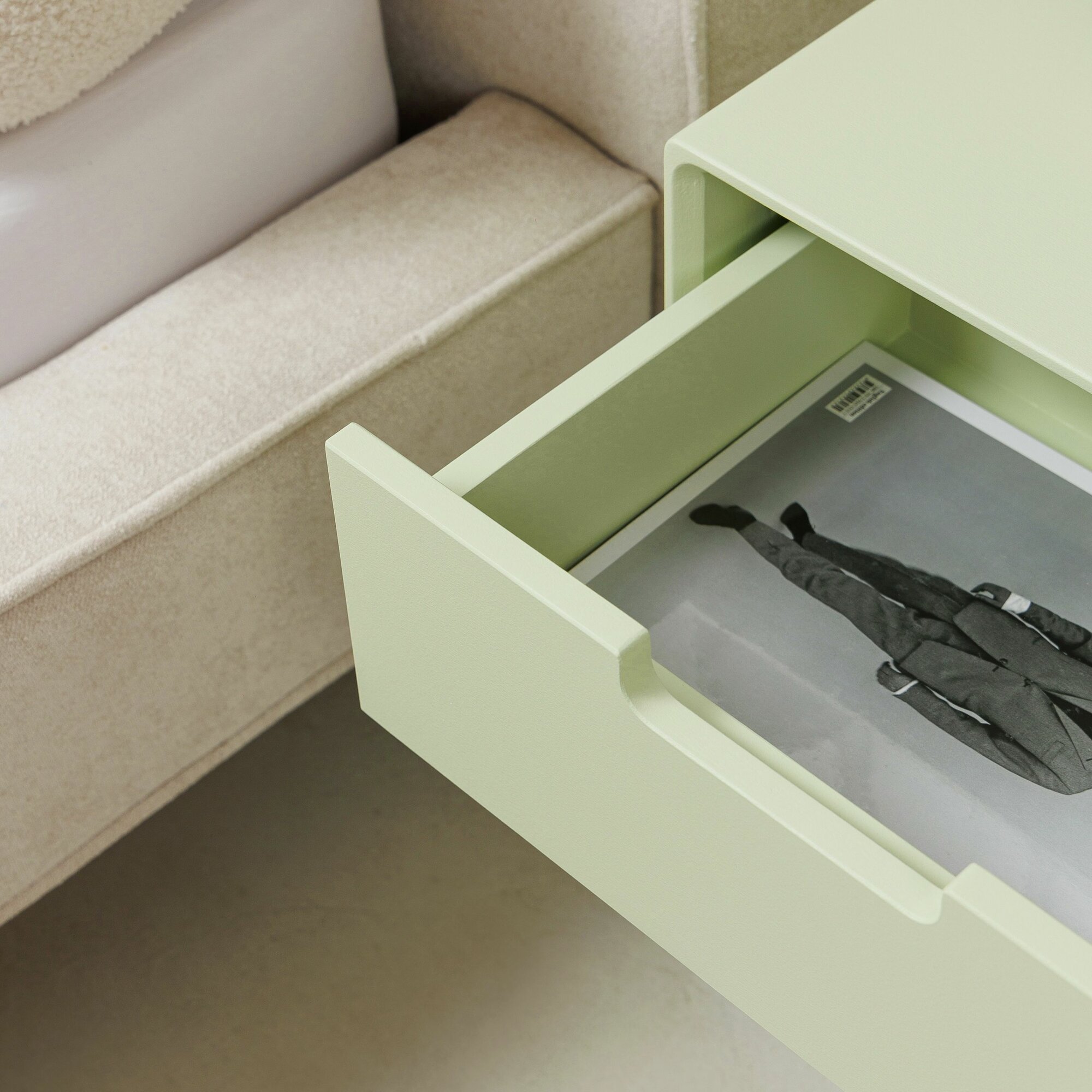 Тумба прикроватная подвесная из дерева 45x35x18, покрытие эмаль, цвет светло-зеленый