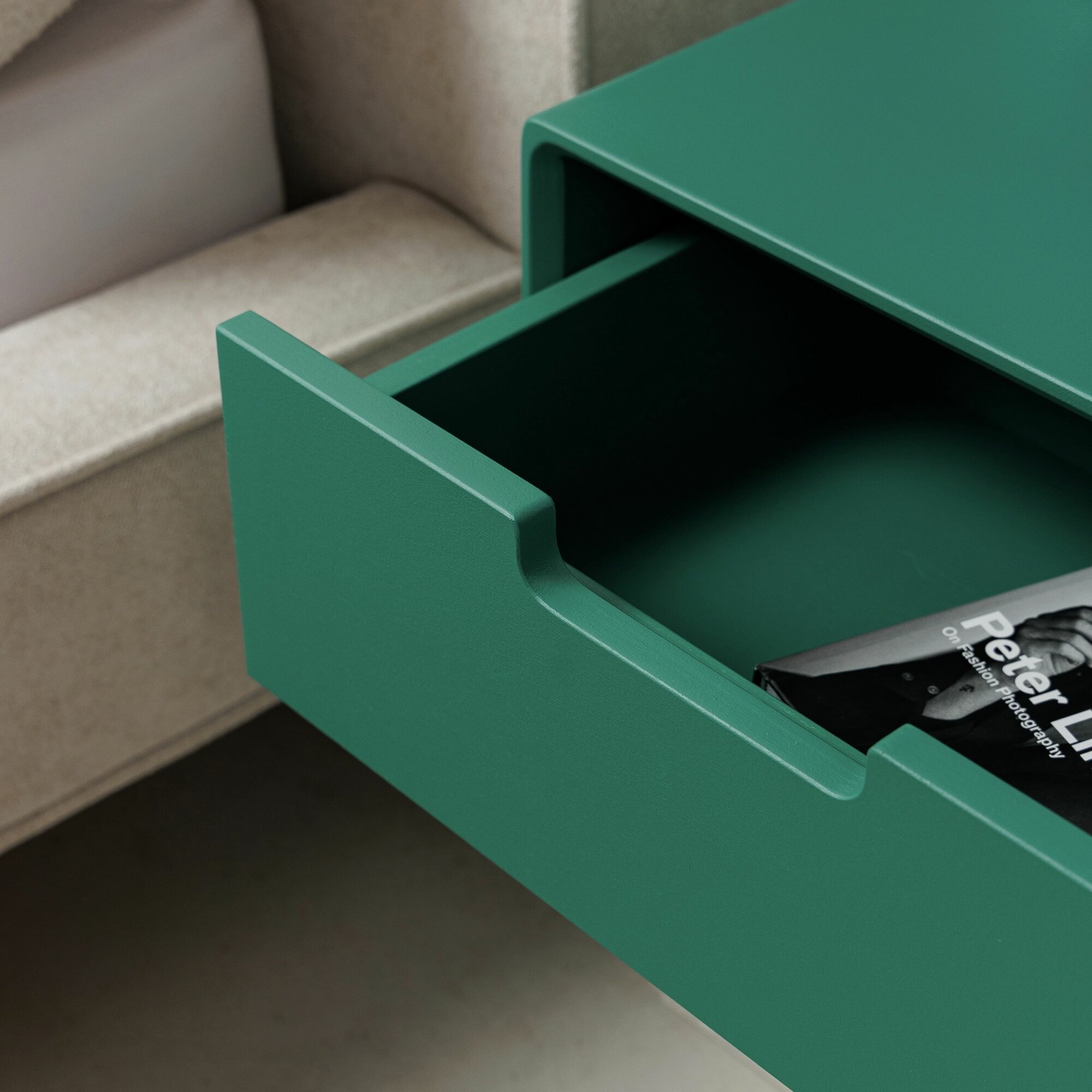 СохранитьТумба прикроватная подвесная из дерева 45x35x18, покрытие эмаль, цвет темно-зеленый, доводчики интересное:
