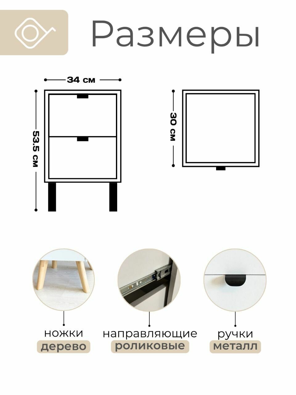Прикроватная тумба на ножках с ящиками цвет белый, 34 см