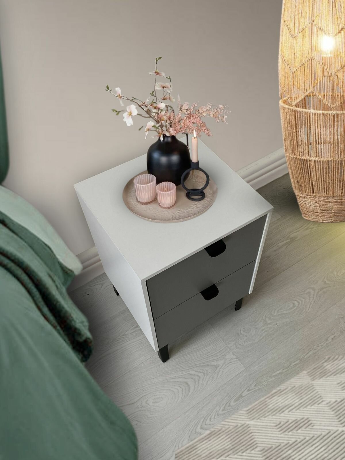 Прикроватная тумба на ножках цвет комбинированный белый, серый и графит, 49 см