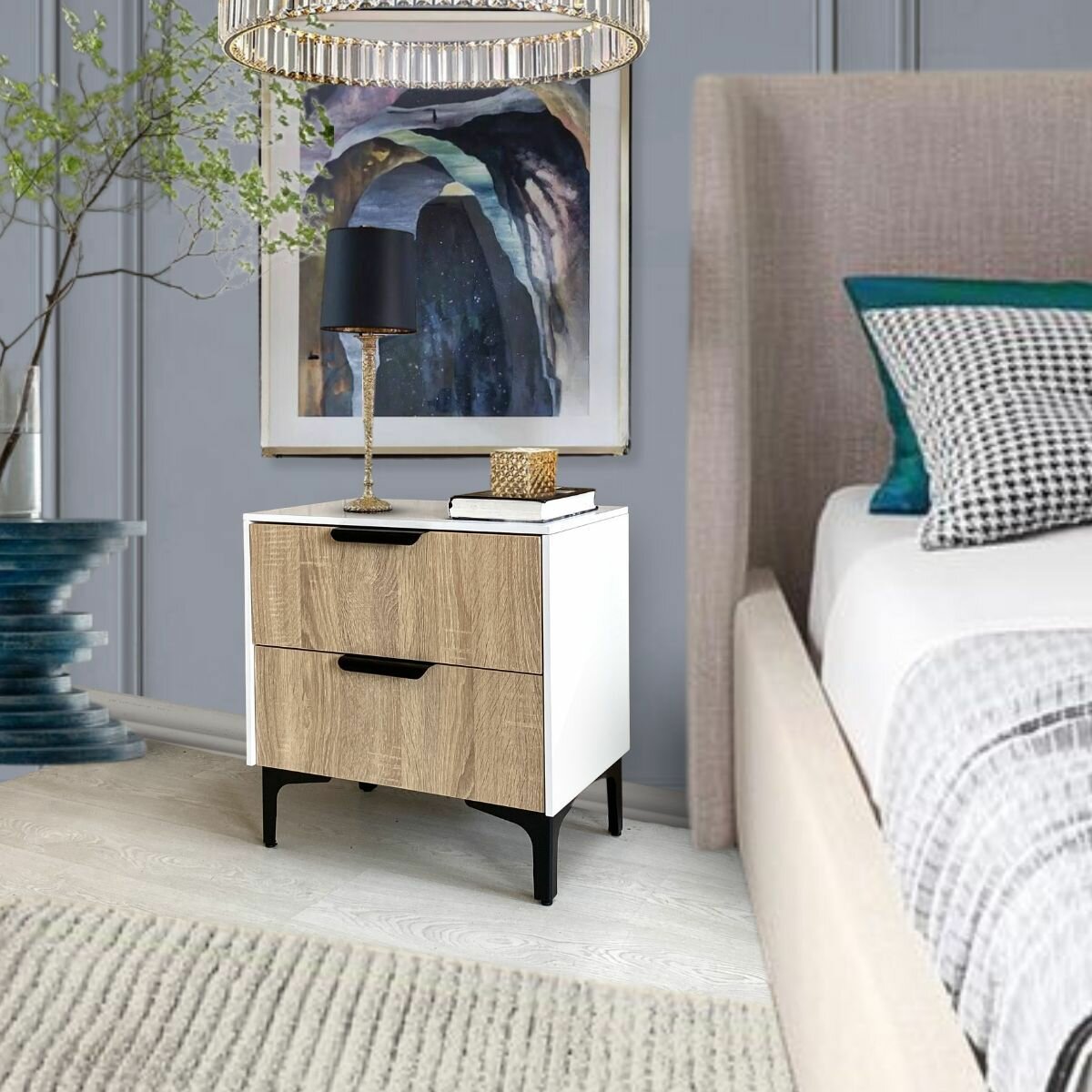 Прикроватная тумба на ножках с ящиками цвет комбинированный светлое дерево и белый, 49 см
