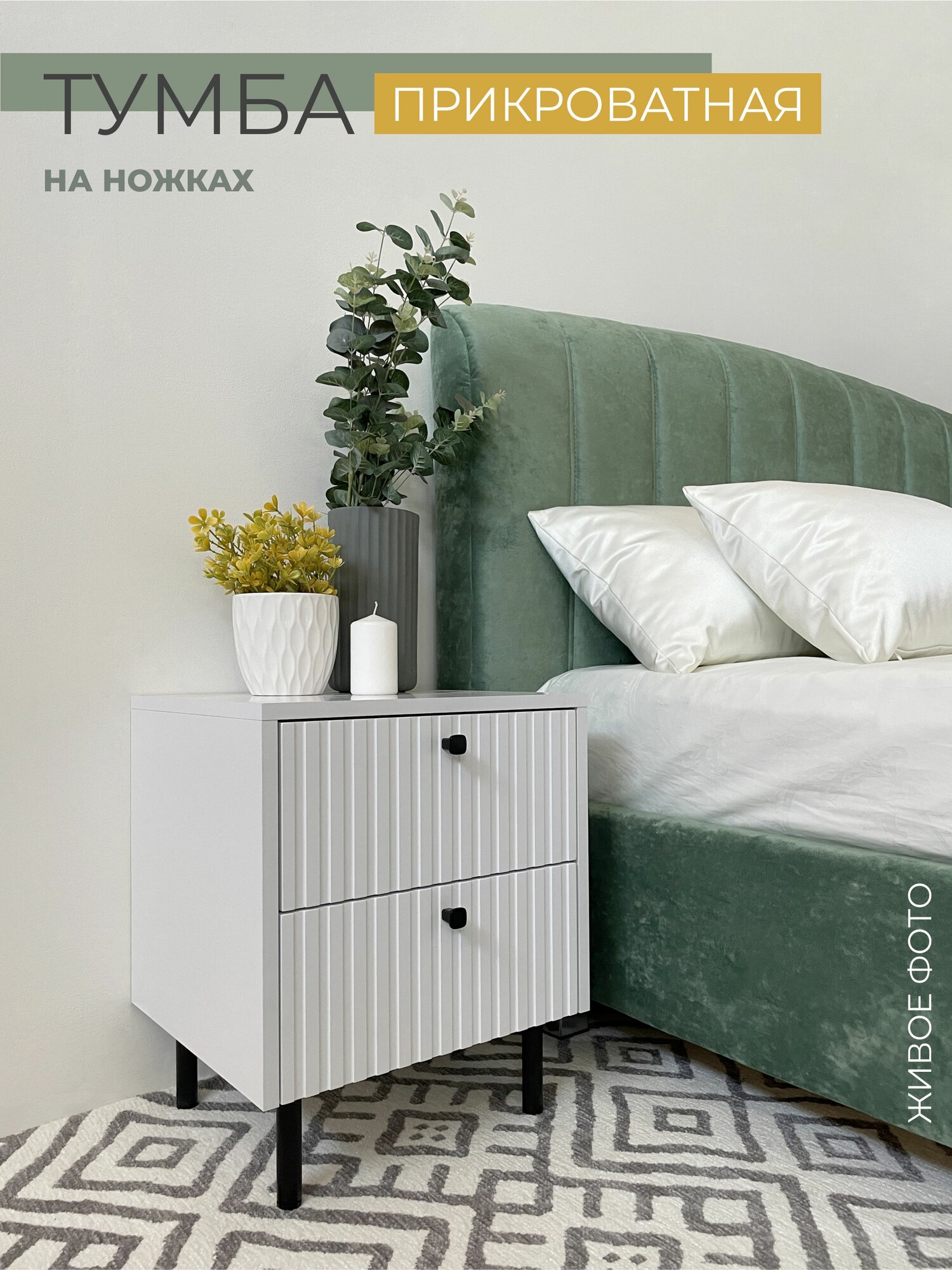 Тумба прикроватная с двумя ящиками, на ножках, белая интересное: