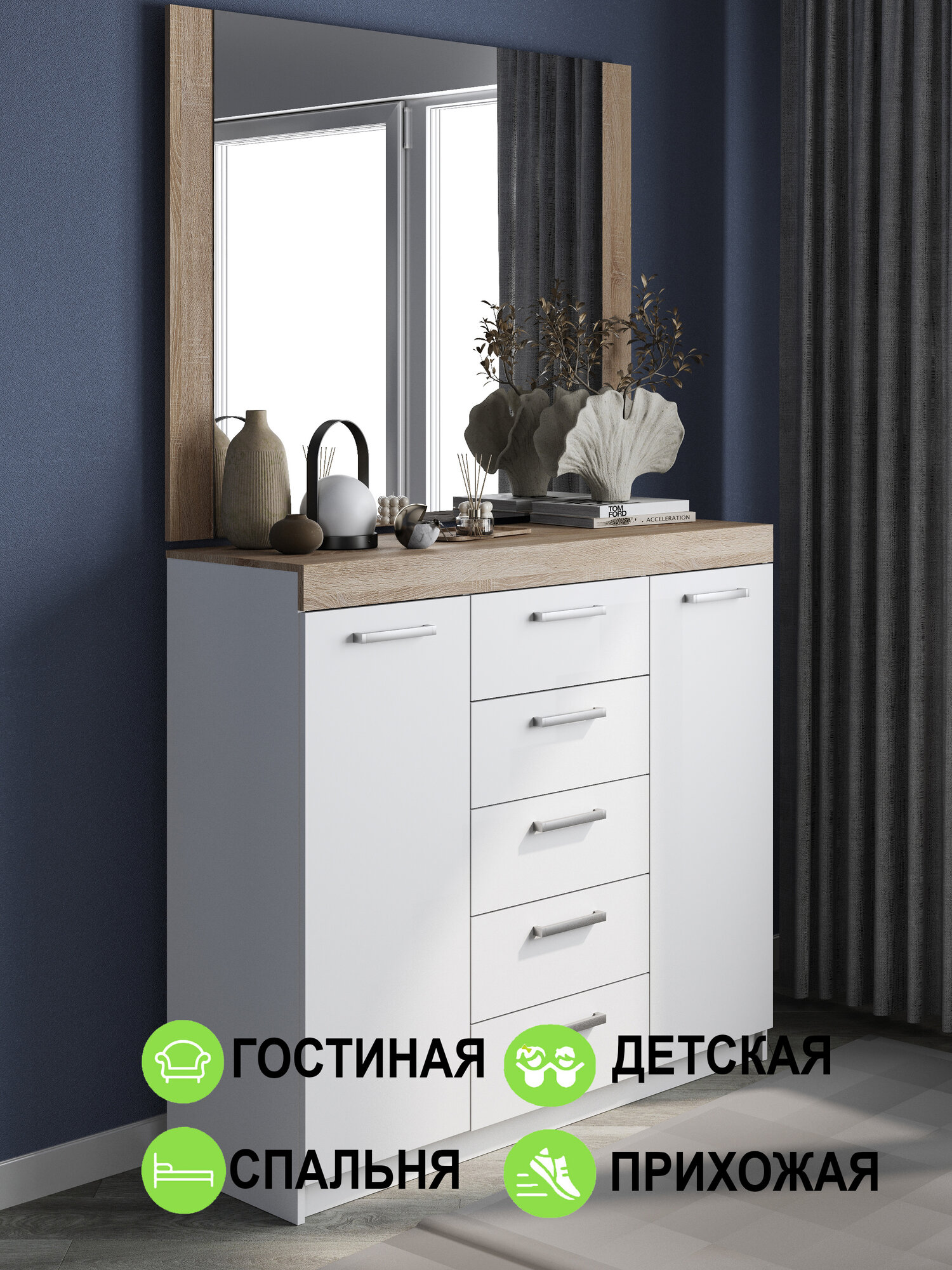 Комод "Модерн" 1300-5 ящиков (2 двери), В*Ш*Г (см) 115х130х40, ЛДСП, белый / дуб сонома интересное: