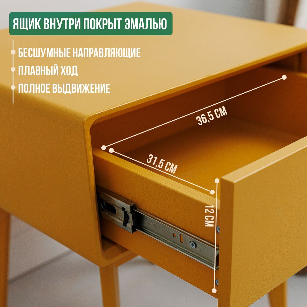 Тумба прикроватная из дерева с выдвижным ящиком на ножках напольная деревянная (как IKEA) в спальню, прихожую, детскую, офис, желтая эмаль, доводчики