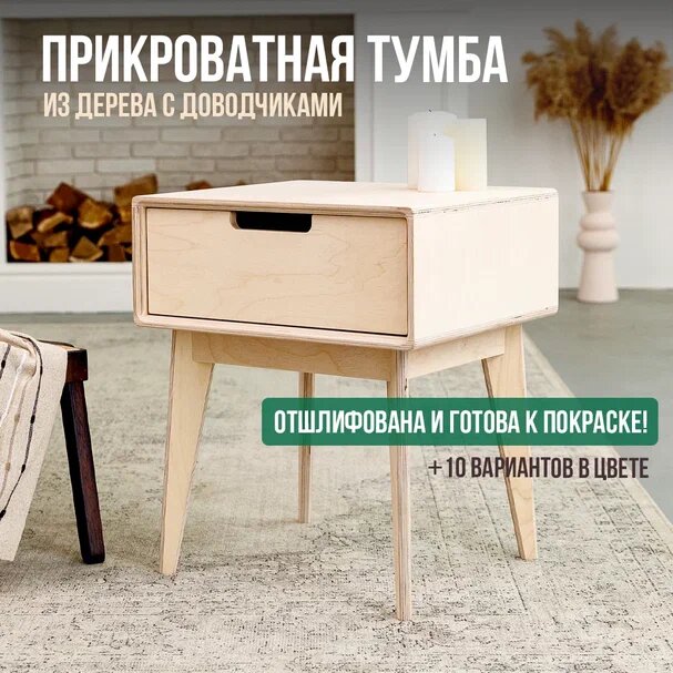 СохранитьТумба прикроватная из дерева с выдвижным ящиком и ножками под покраску, без покрытия, доводчики интересное: