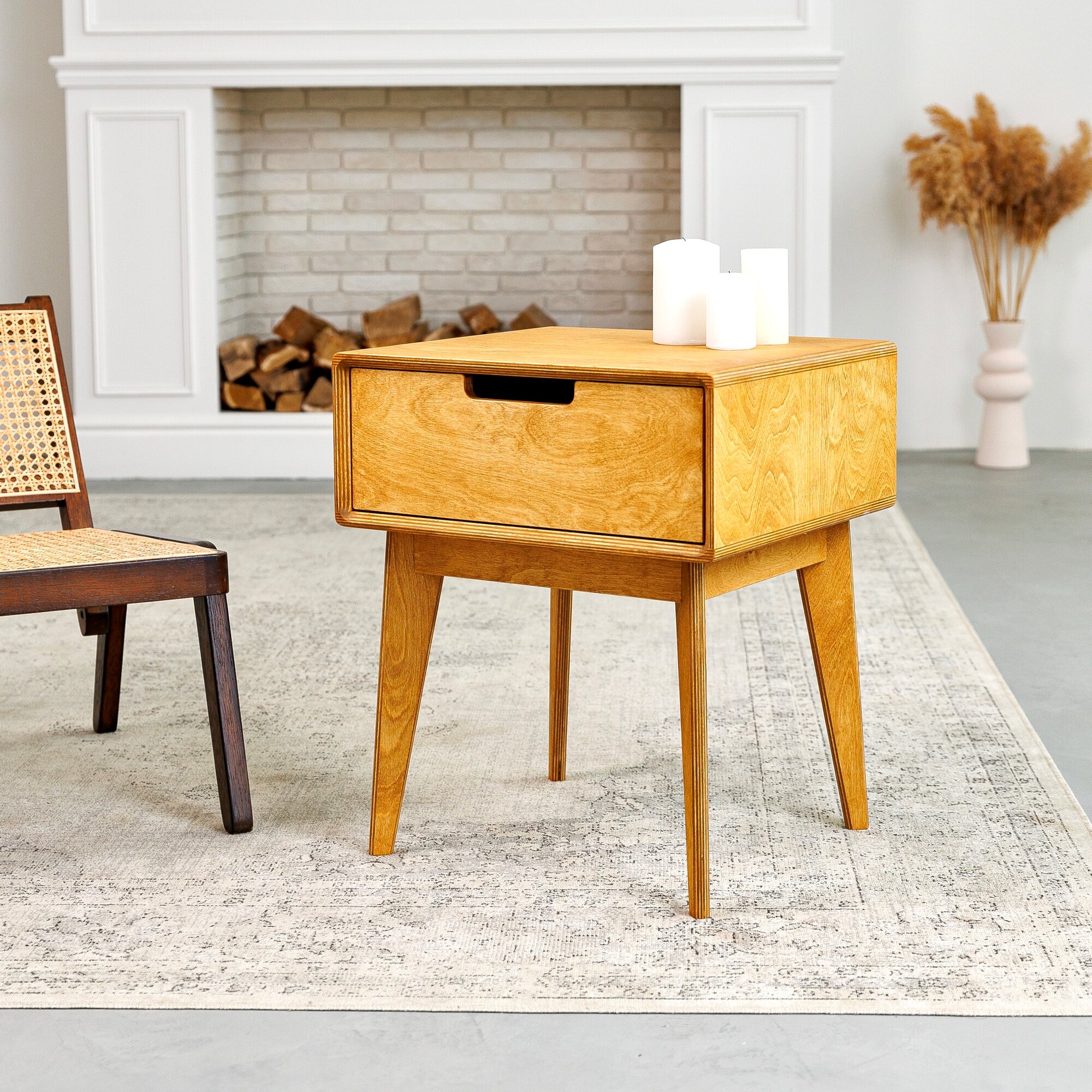 Тумба прикроватная из дерева с выдвижным ящиком на ножках напольная деревянная (как IKEA) в спальню, прихожую, детскую, терракотовая эмаль, доводчики