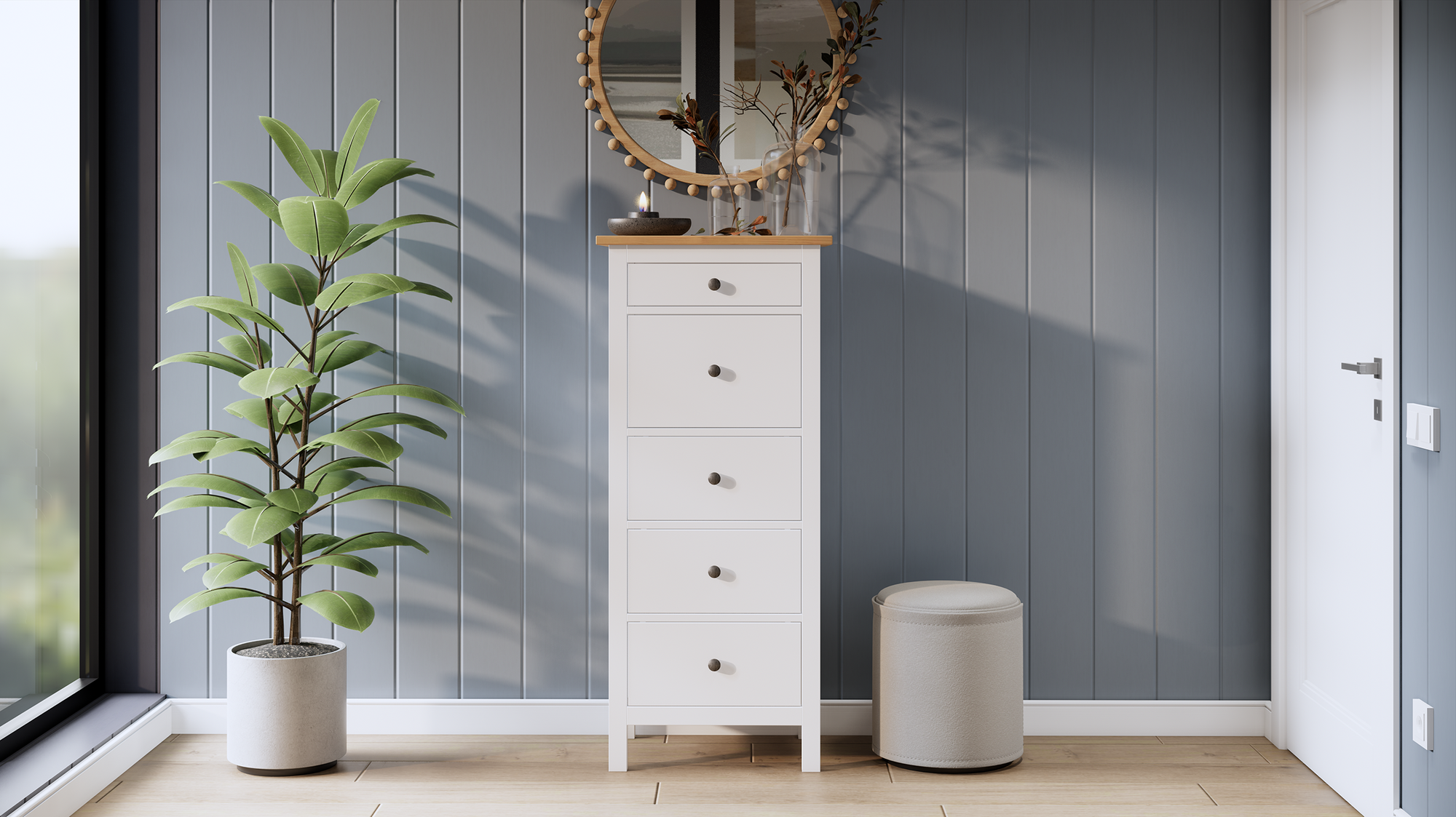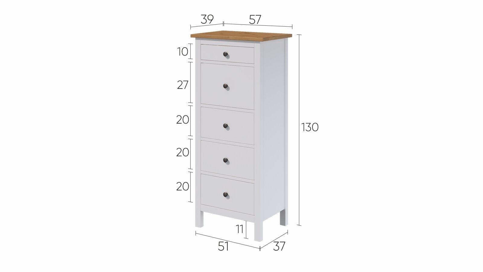 Купить Комод Кымор /Икеа 5 ящиков 57*37*130 белый /светло-коричневый, массив сосны, роликовые направляющие