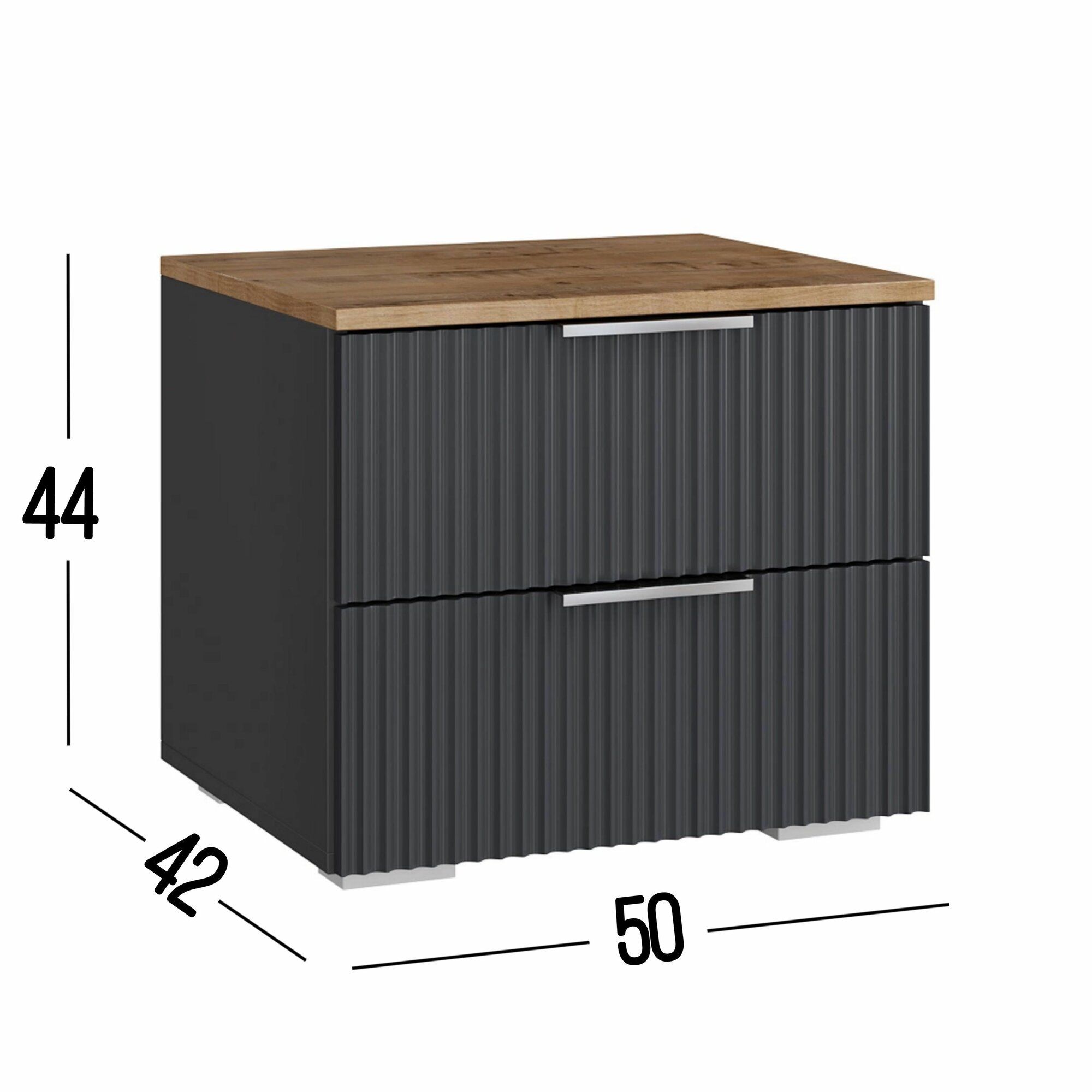 Купить Тумба прикроватная для спальни с ящиками напольная, Ингрия 2 графит, 50х44х42 см