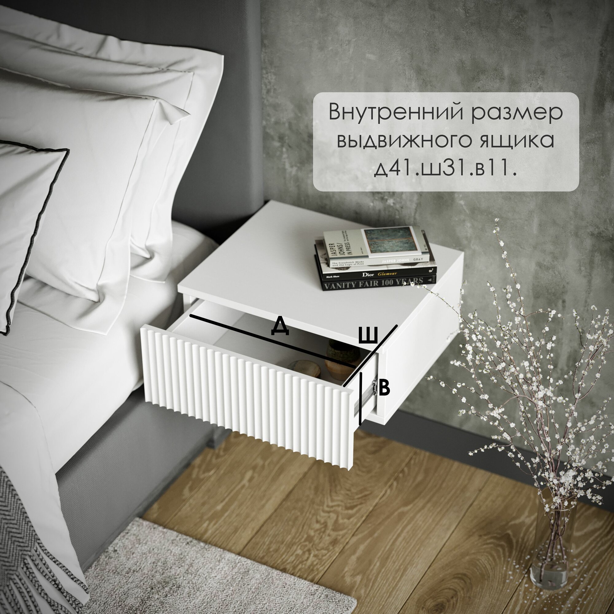 Тумба прикроватная подвесная консоль Ингрия 1 белая, push to open, 50x22х42 см интересное: