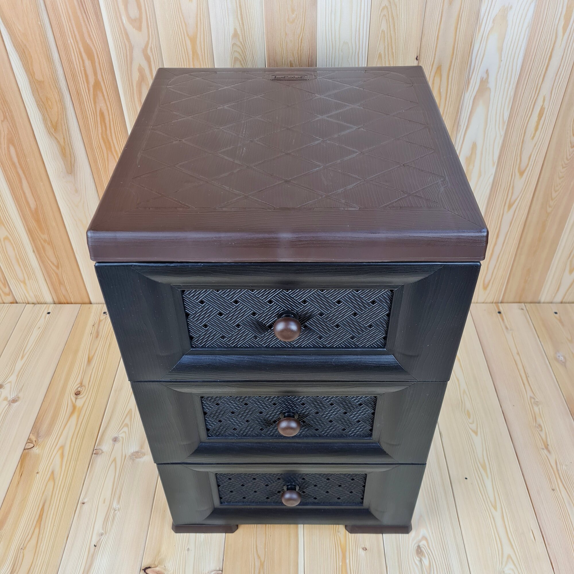 Комод пластиковый ,"УЮТ", усиленный, 3 этажа, Цвет: Шоколадный с Бежевыми плетёными ящиками.