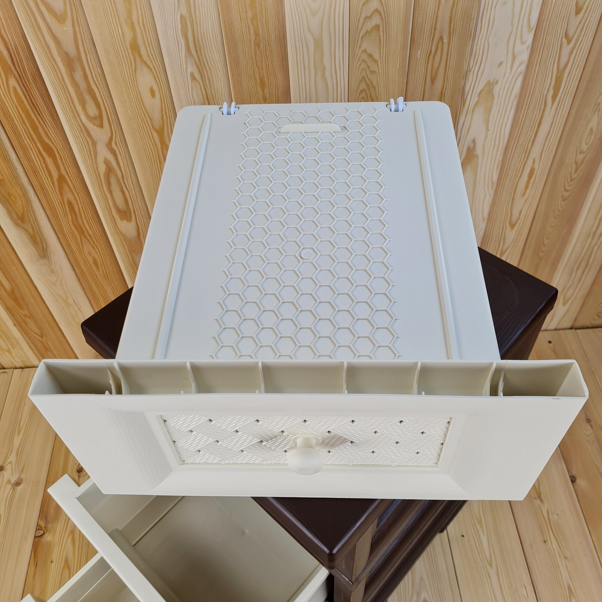 Комод пластиковый ,"УЮТ", усиленный, 3 этажа, Цвет: Бежевый с Бежевыми сплошными ящиками. (Слоновая кость)
