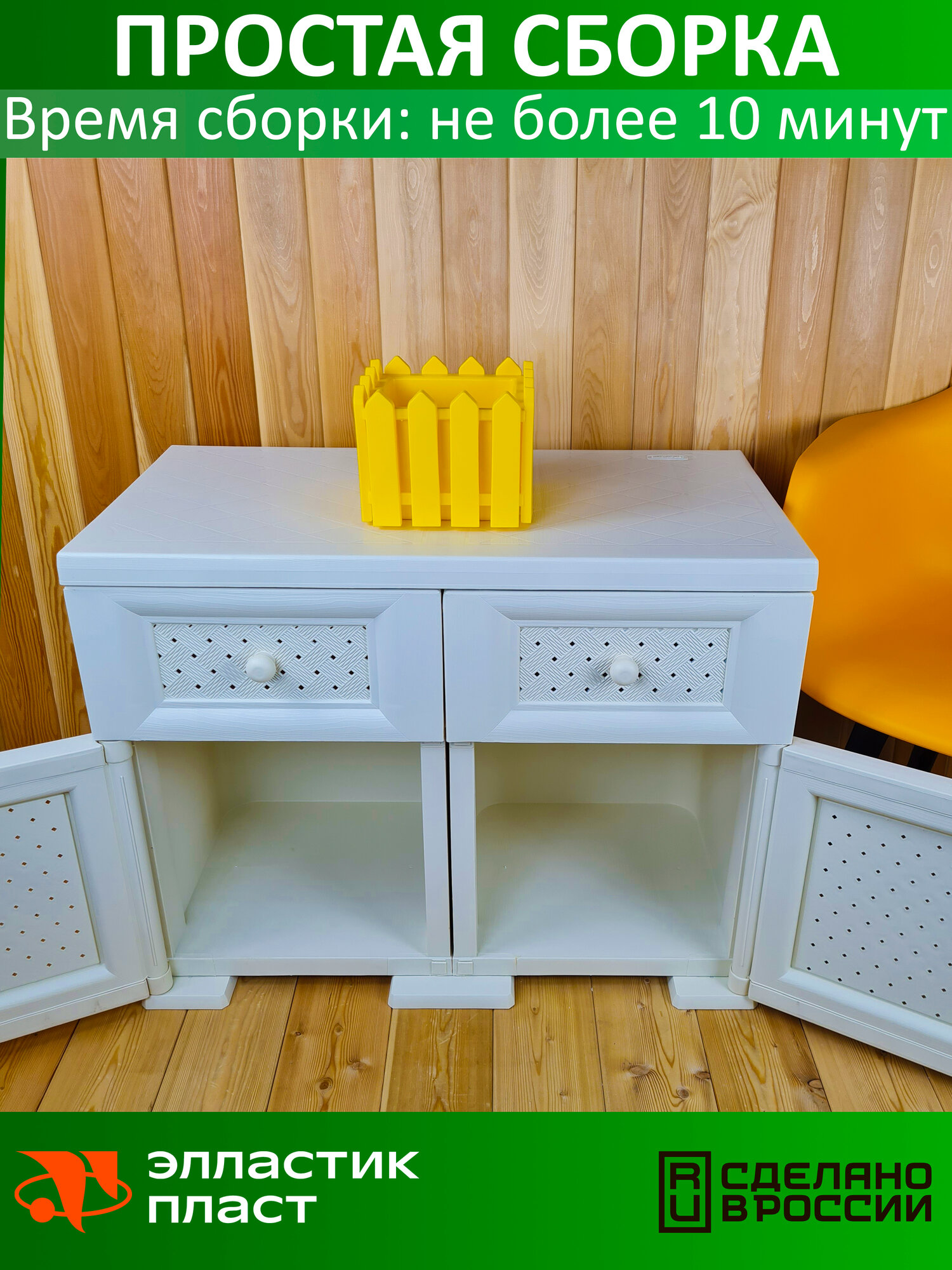 Тумба широкая "УЮТ" пластиковая, усиленная, 81х42х64 h, 2 ящика, 2 дверцы. Имитация фактуры дерева. Цвет: Бежевый (слоновая кость) интересное: