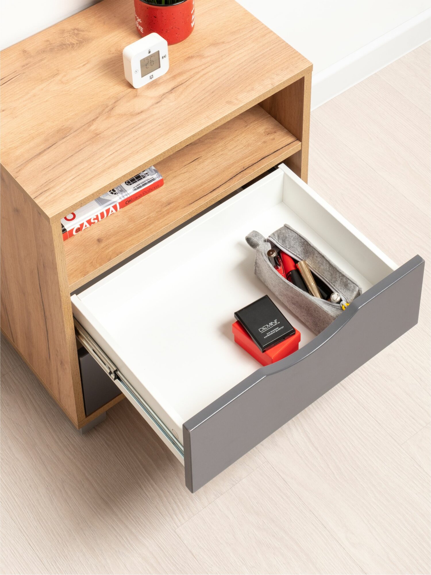 Прикроватная тумба Лайт 13.80F 50х33,5х57,5 см, 2 ящика, ЛДСП/МДФ, серый графит