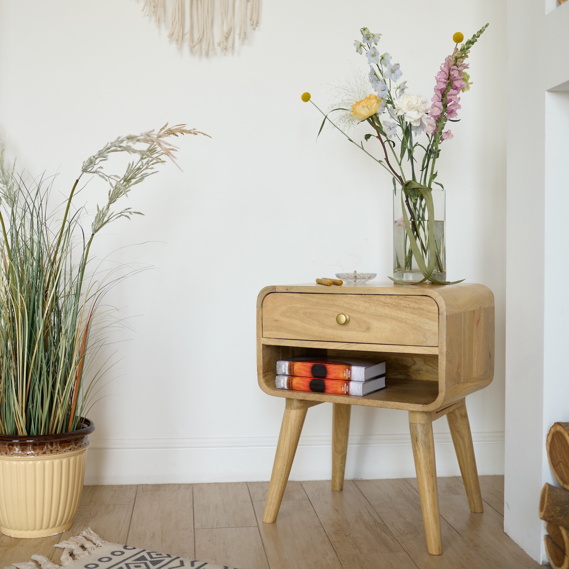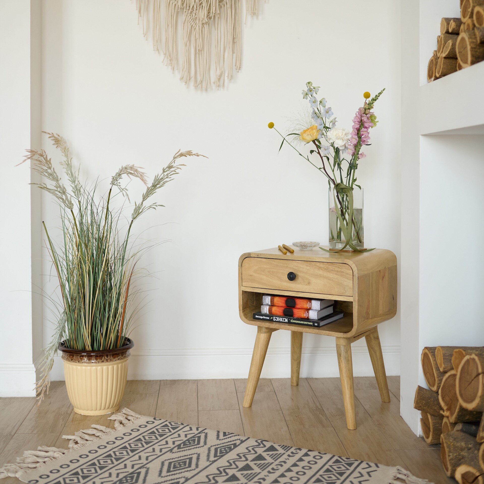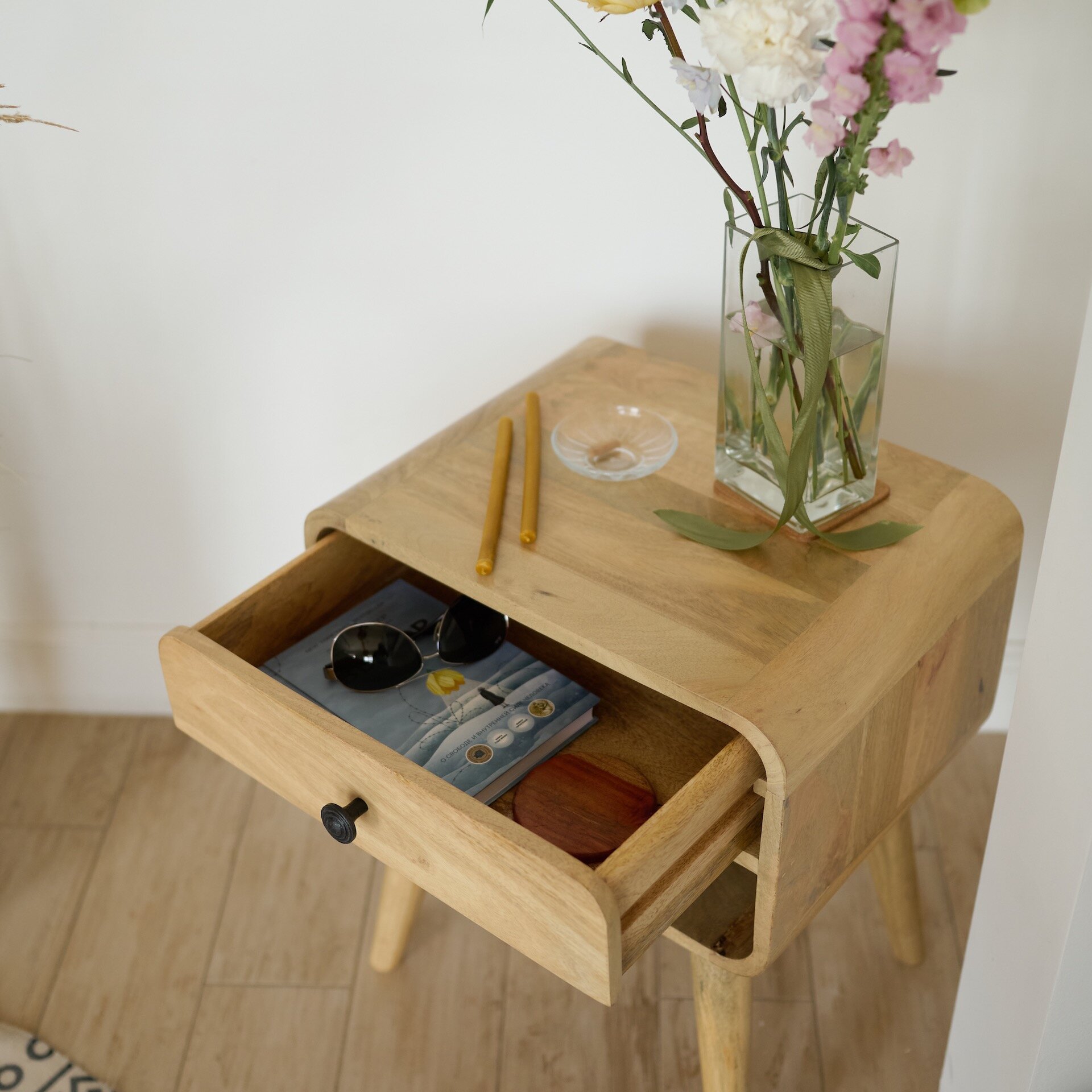 Тумбочка прикроватная из массива манго, АЛЬРИК с полкой, для спальни интересное: