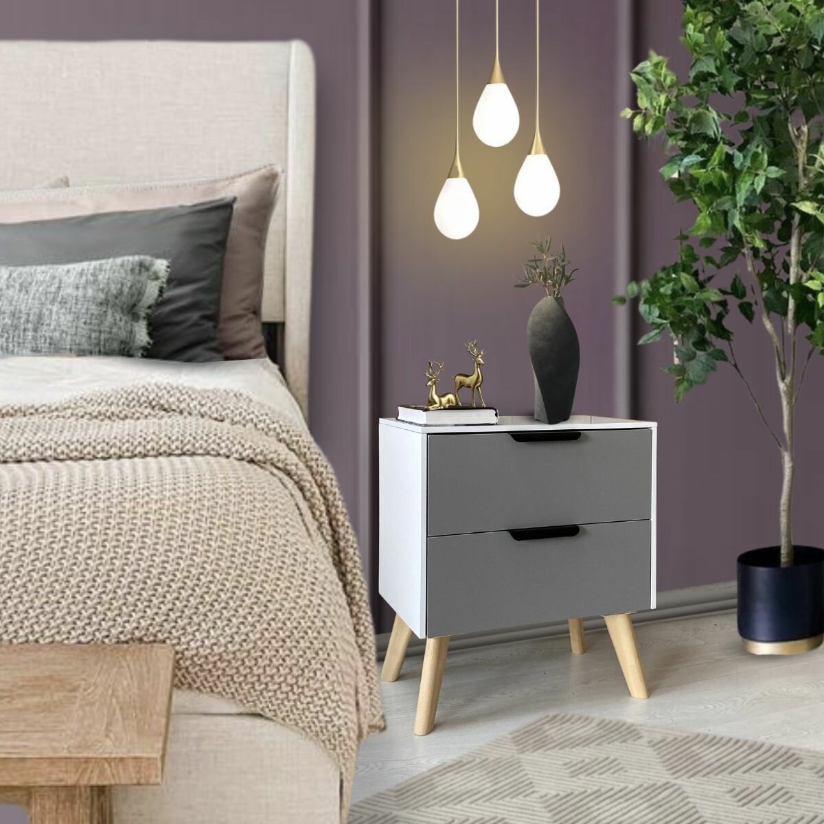 Тумба прикроватная на ножках с ящиками цвет комбинированный светлое дерево и светло серый, 49 см