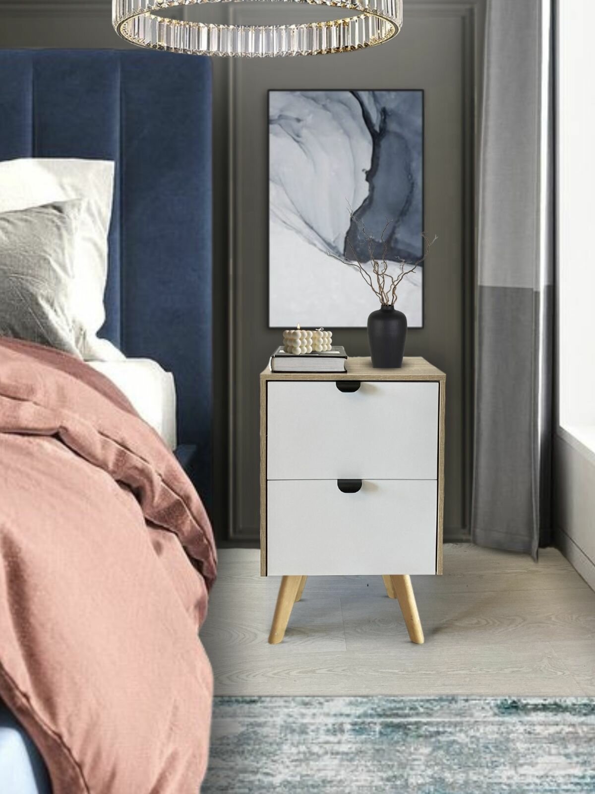 Тумба прикроватная на ножках цвет комбинированный светлое дерево и белый, 49 см