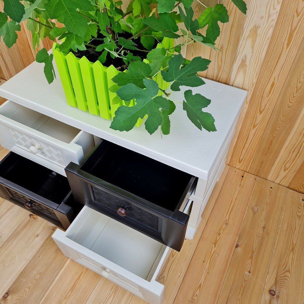 СохранитьКомод широкий, пластиковый, "УЮТ", усиленный, 2 этажа, 4 ящика. Цвет: Бежевый с бежево-шоколадными плетёными ящиками. Арт: К-002-Б2Б2Ш-В1 интересное: