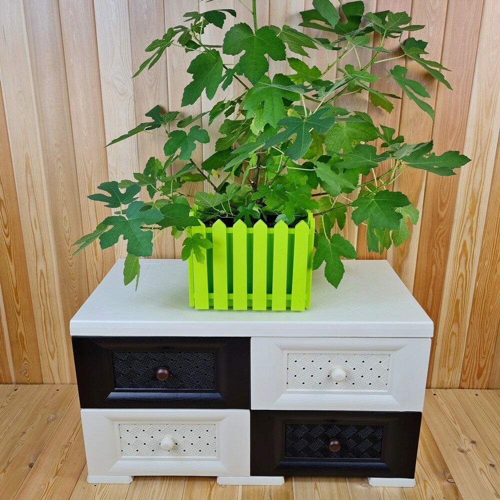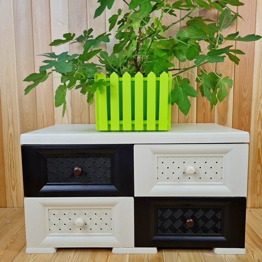 Комод широкий, пластиковый, "УЮТ", усиленный, 2 этажа, 4 ящика. Цвет: Бежевый с шоколадными плетёными ящиками. Арт: К-002-Б4Ш