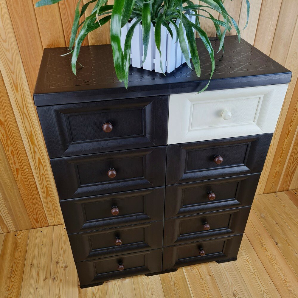 Комод широкий, пластиковый, "УЮТ", усиленный, 5 этажей, 10 ящиков. Цвет: Шоколадный с шоколадно-бежевыми сплошными ящиками. Арт: К-014-Ш6Б4Ш