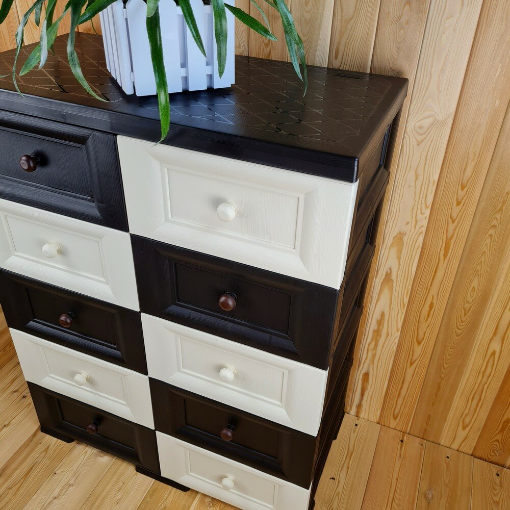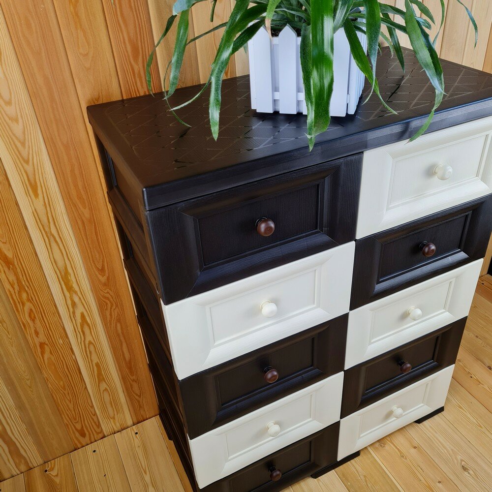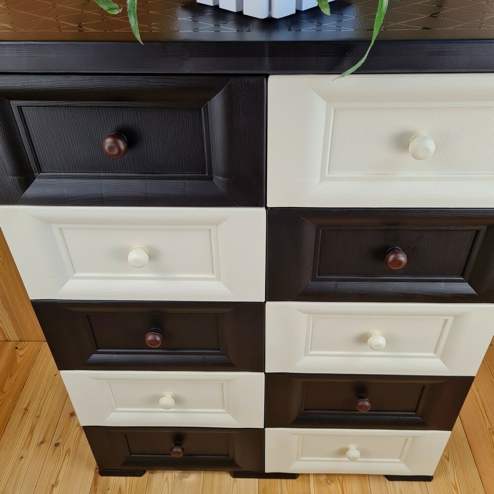 Комод широкий, пластиковый, "УЮТ", усиленный, 5 этажей, 10 ящиков. Цвет: Шоколадный с шоколадно-бежевыми сплошными ящиками. Арт: К-014-Ш6Б4Ш