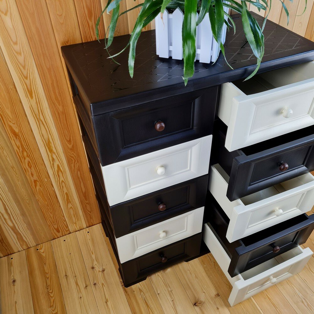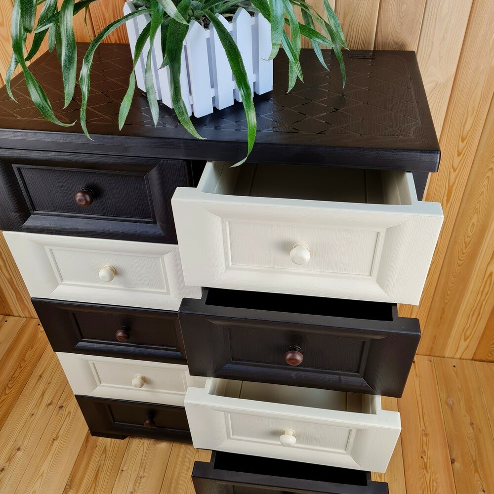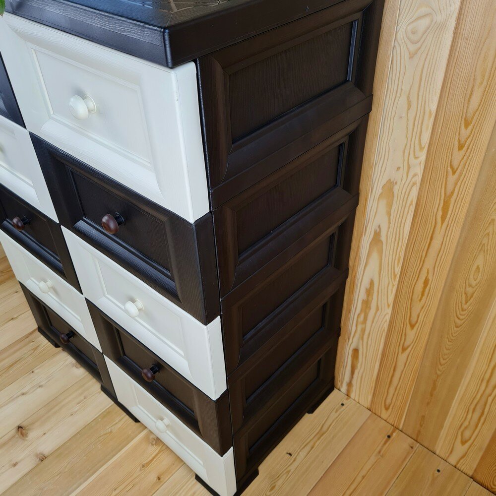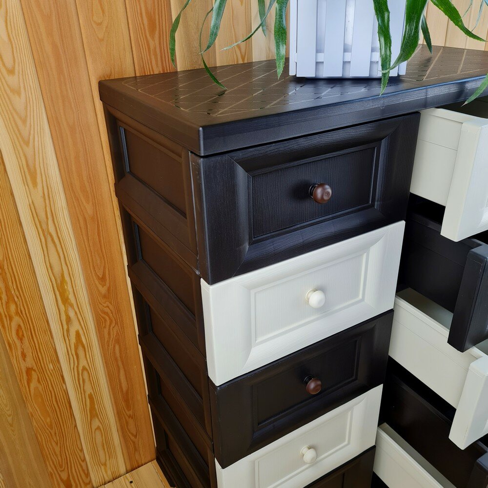 Комод широкий, пластиковый, "УЮТ", усиленный, 5 этажей, 10 ящиков. Цвет: Шоколадный с шоколадно-бежевыми сплошными ящиками. Арт: К-014-Ш6Б4Ш