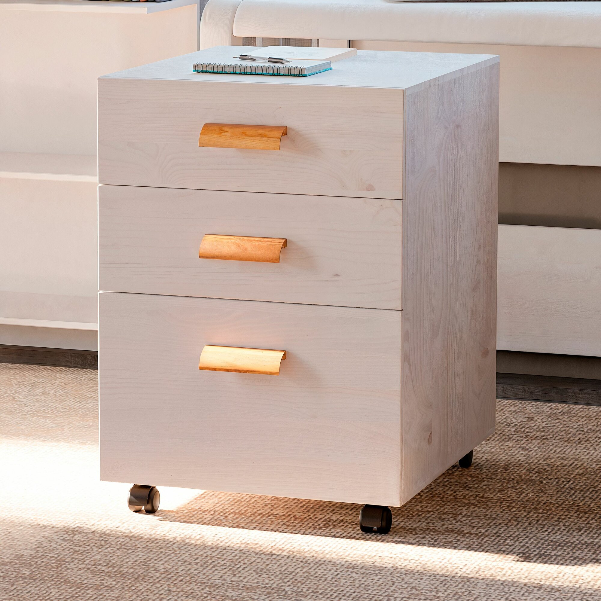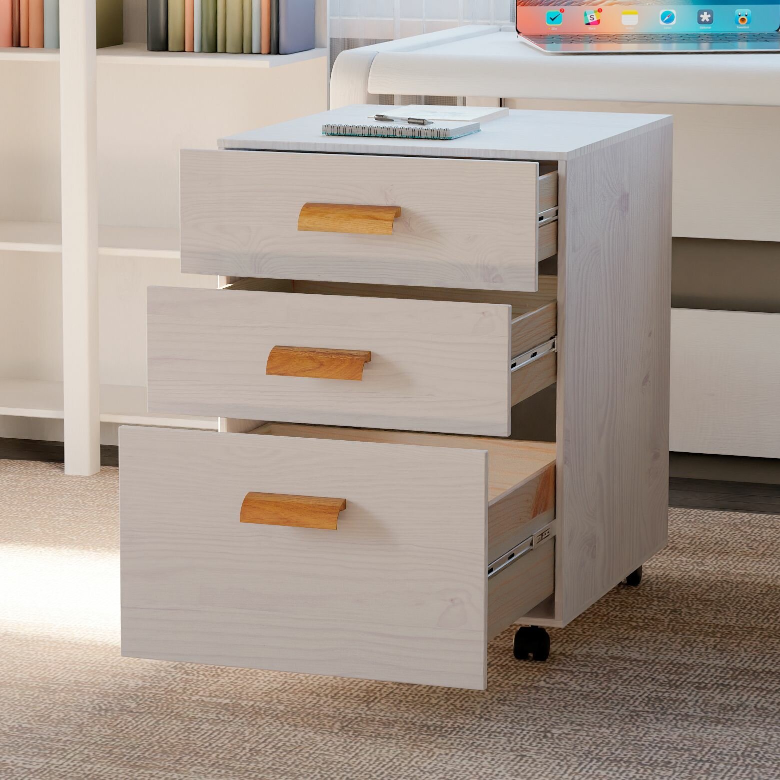 Офисная тумба под стол с 3 ящиками Мадейра 45х45х67см из массива сосны на колесиках, белый интересное: