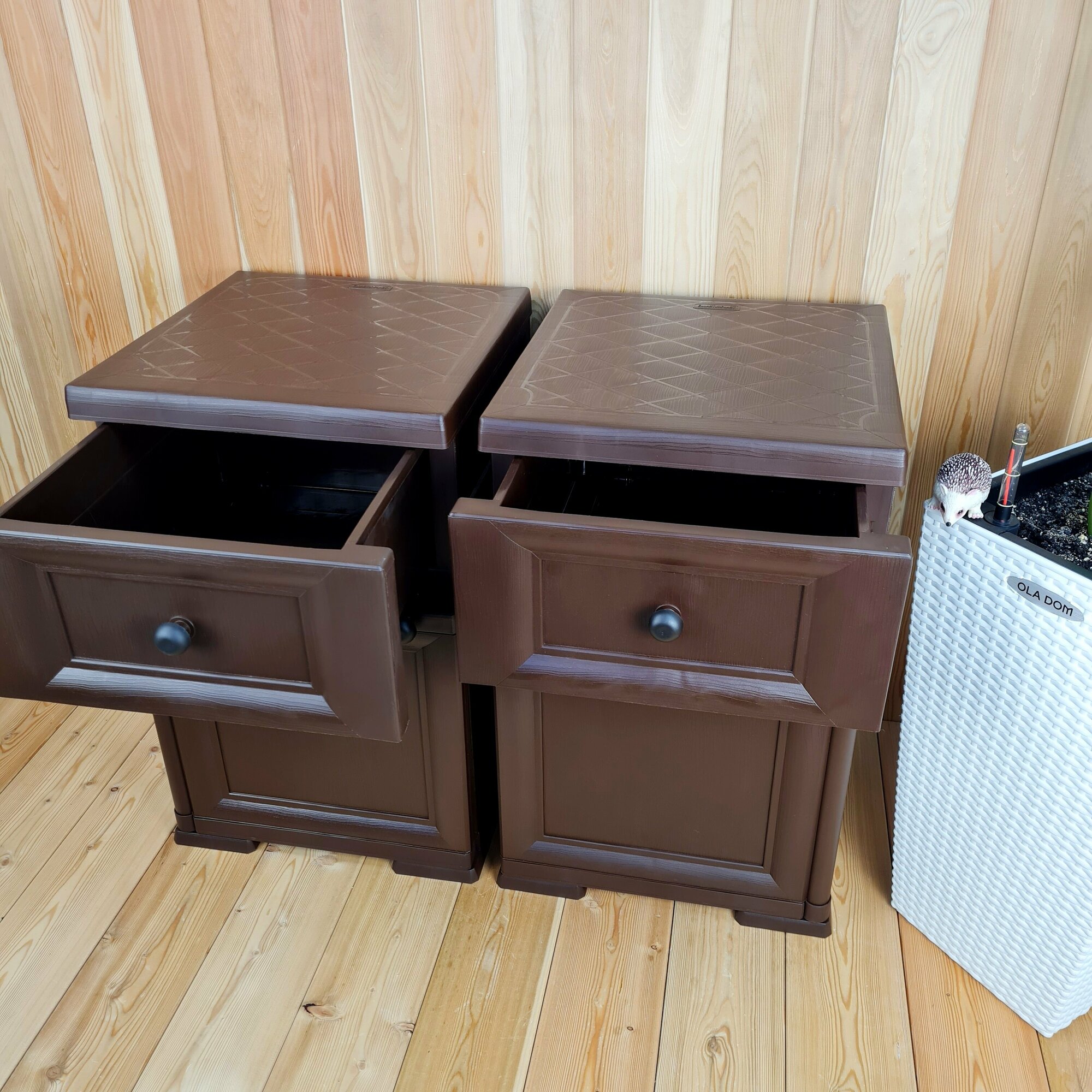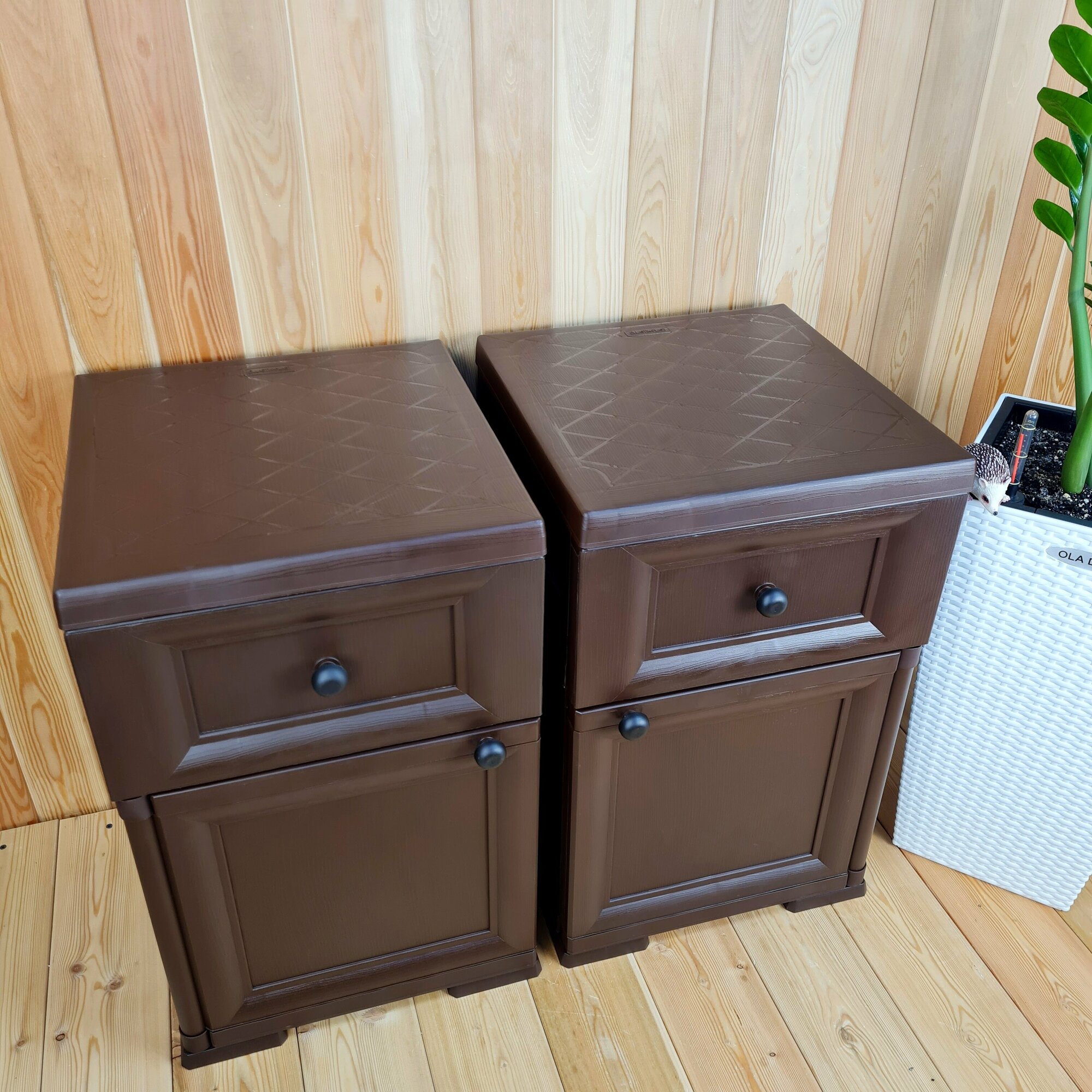 Две прикроватные пластиковые тумбы "УЮТ". Фактура под дерево. Цвет: Коричневый. Арт: Э-07069-Д