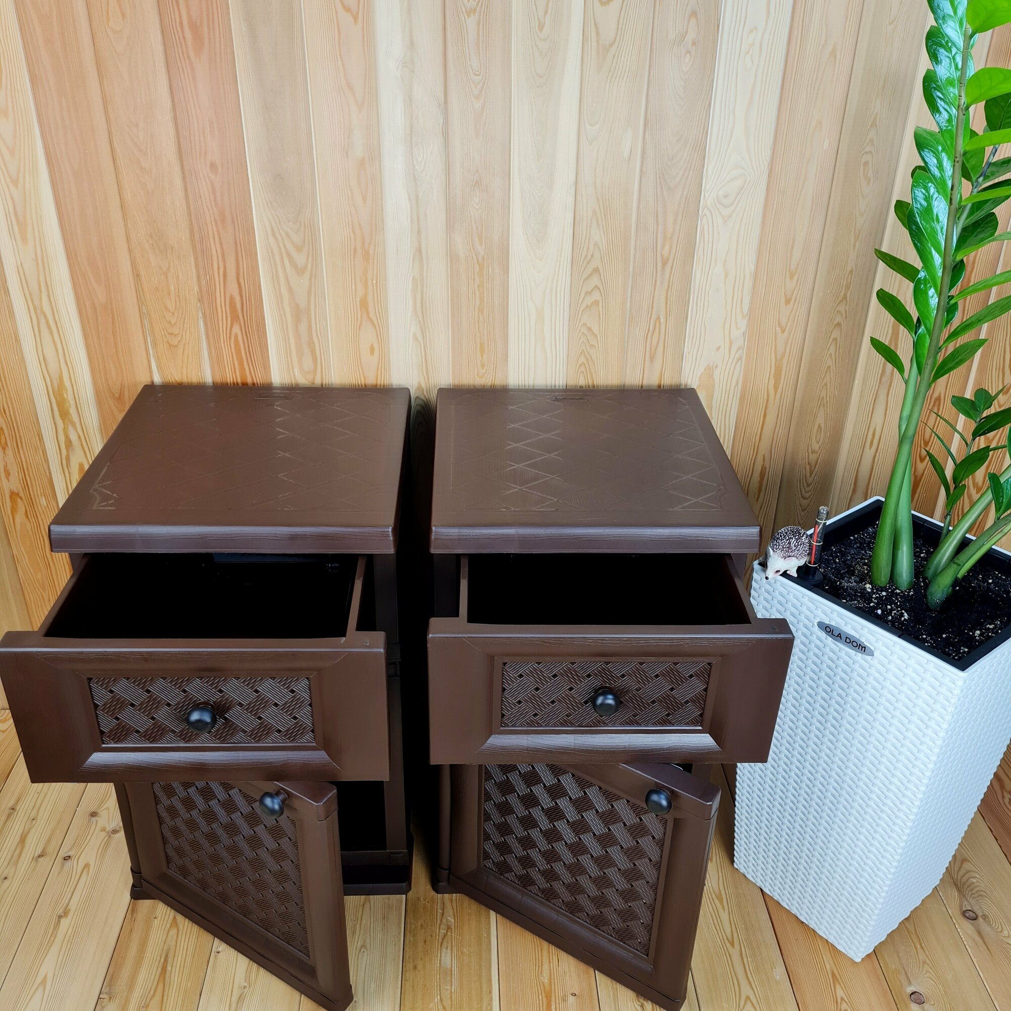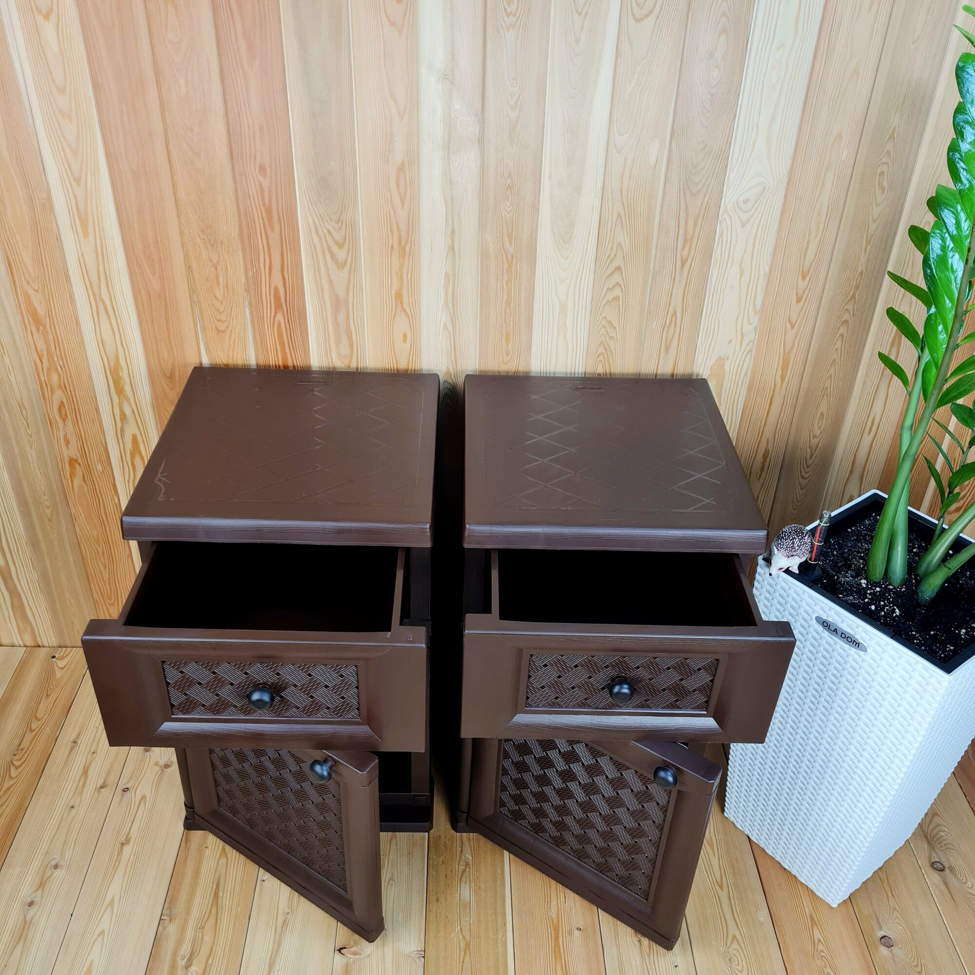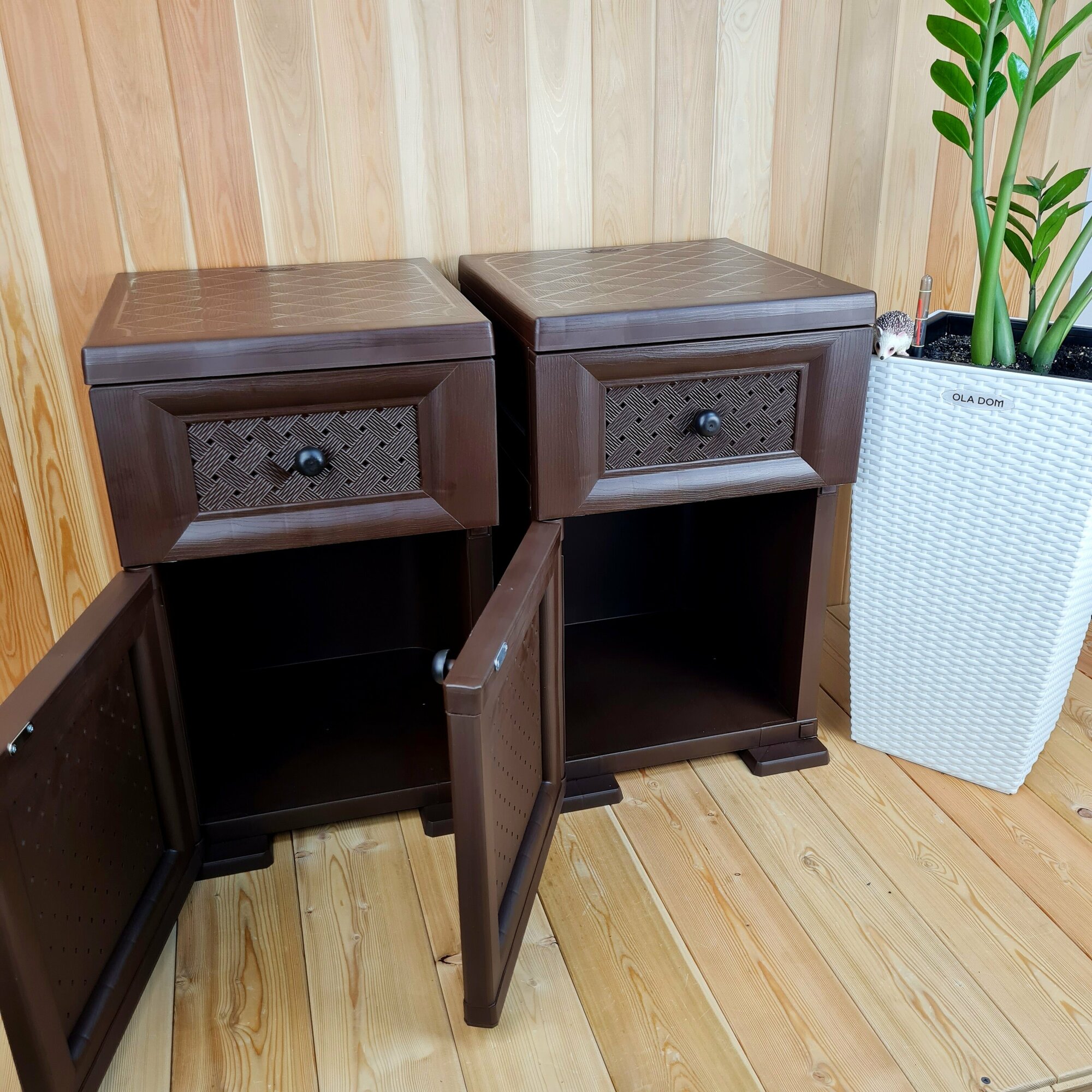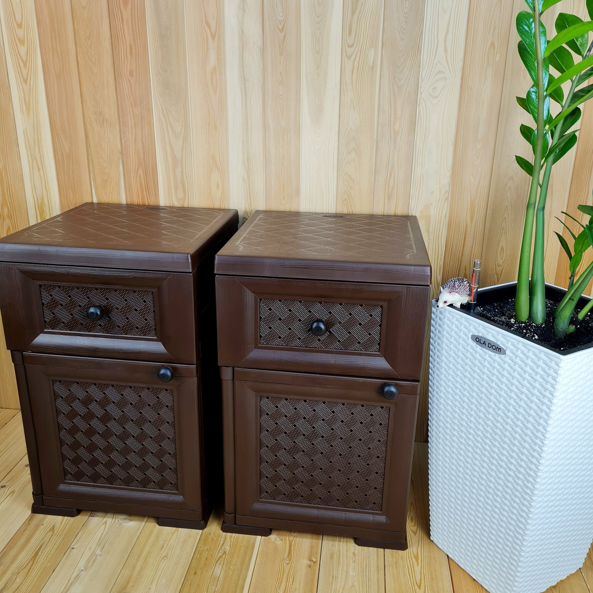 Две прикроватные пластиковые тумбы "УЮТ". Фактура под дерево. Цвет: Коричневый. Арт: Э-06564-Д