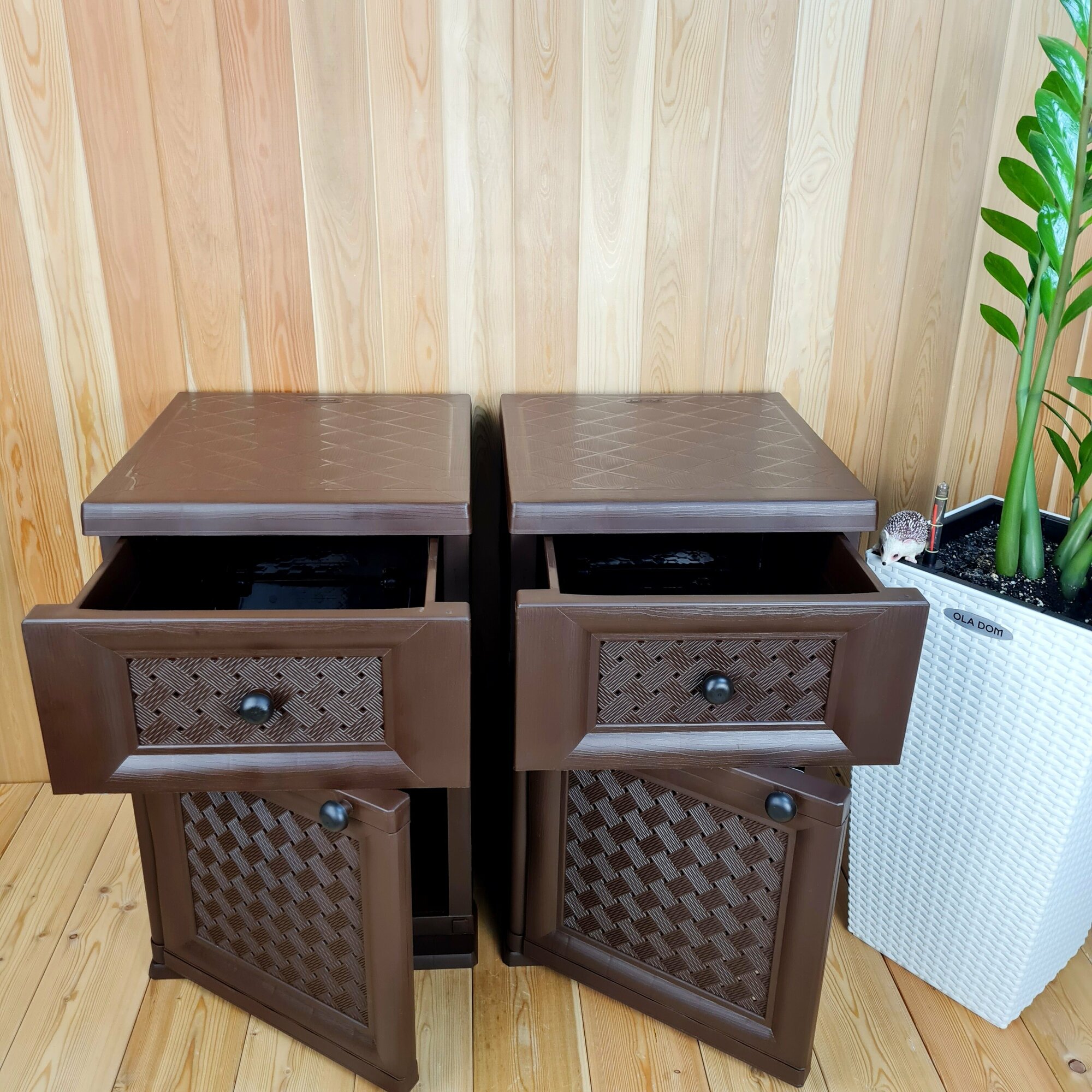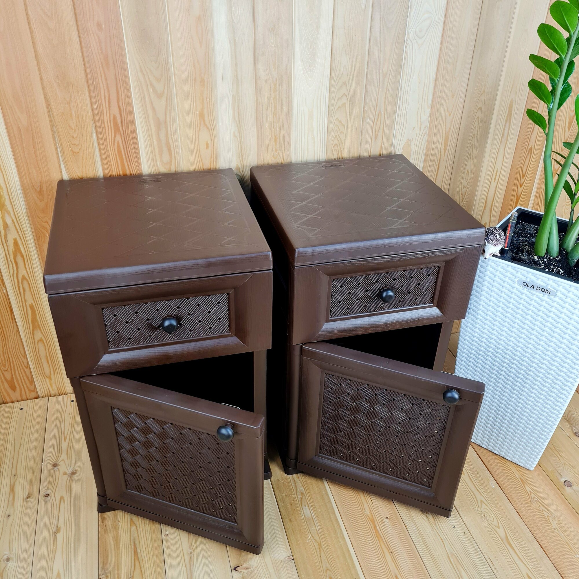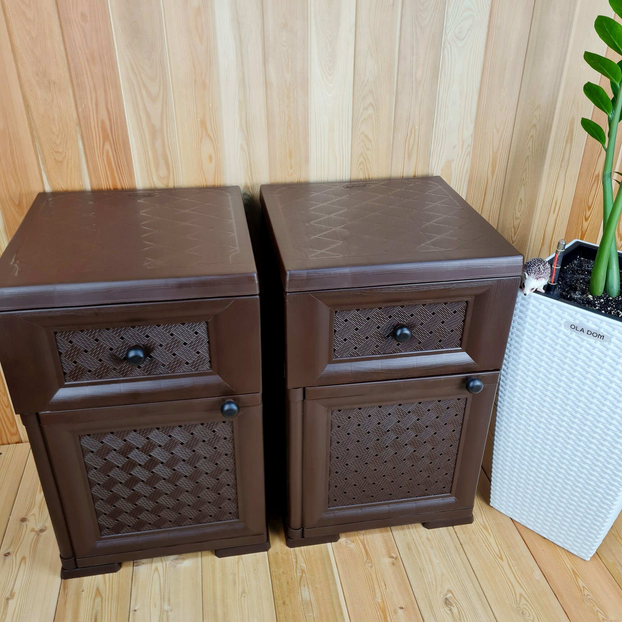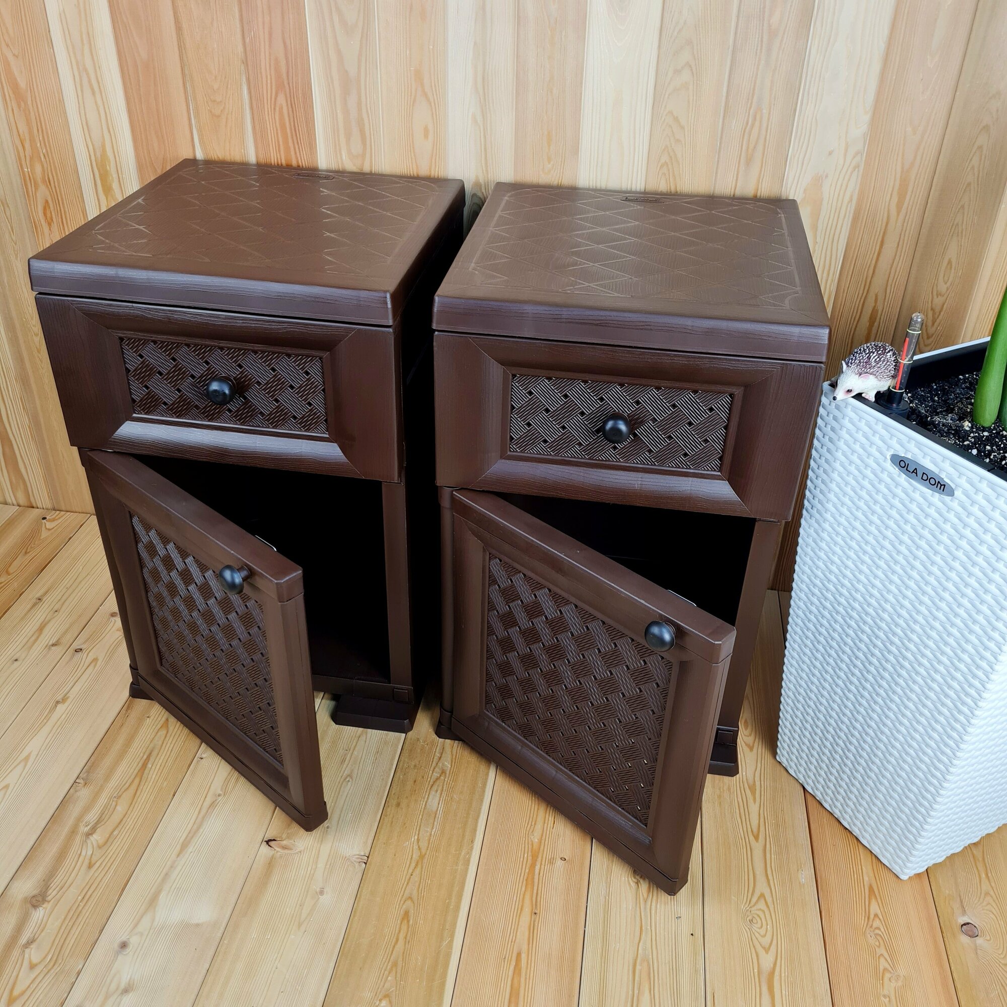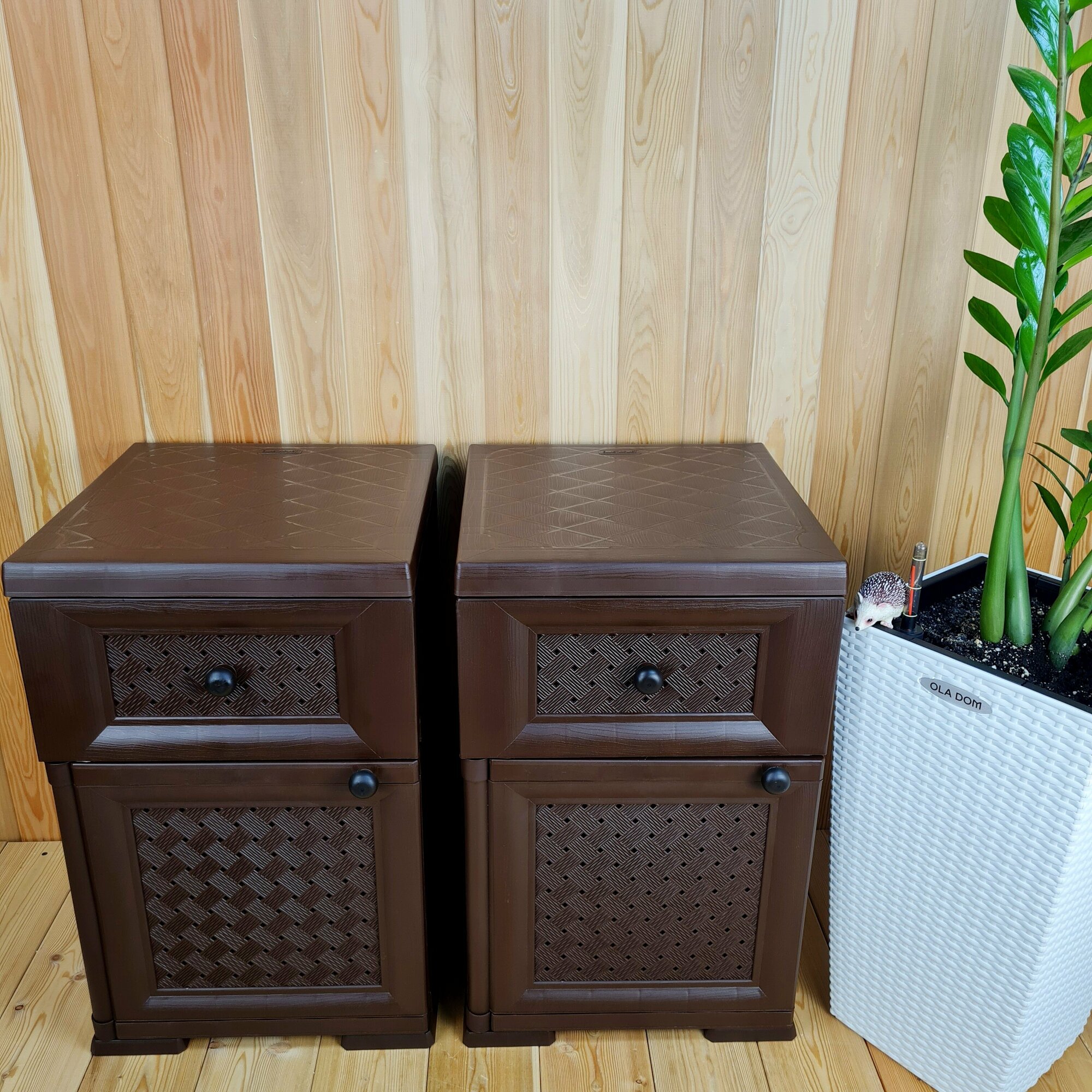Две прикроватные пластиковые тумбы "УЮТ". Фактура под дерево. Цвет: Коричневый. Арт: Э-06564-Д