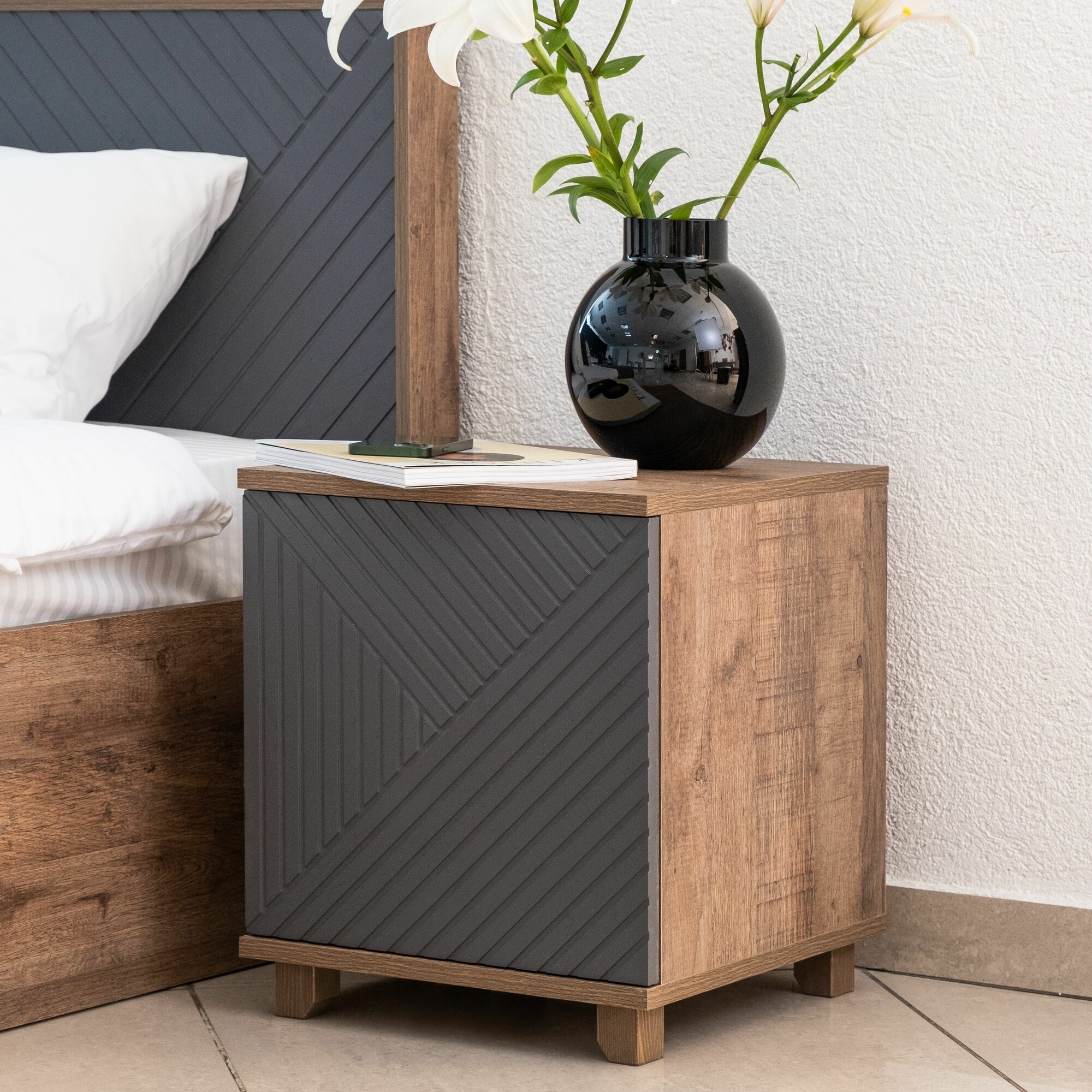 Тумба прикроватная Копенгаген со створкой ЛДСП Дуб сонома / МДФ Серый графит 40х40x45