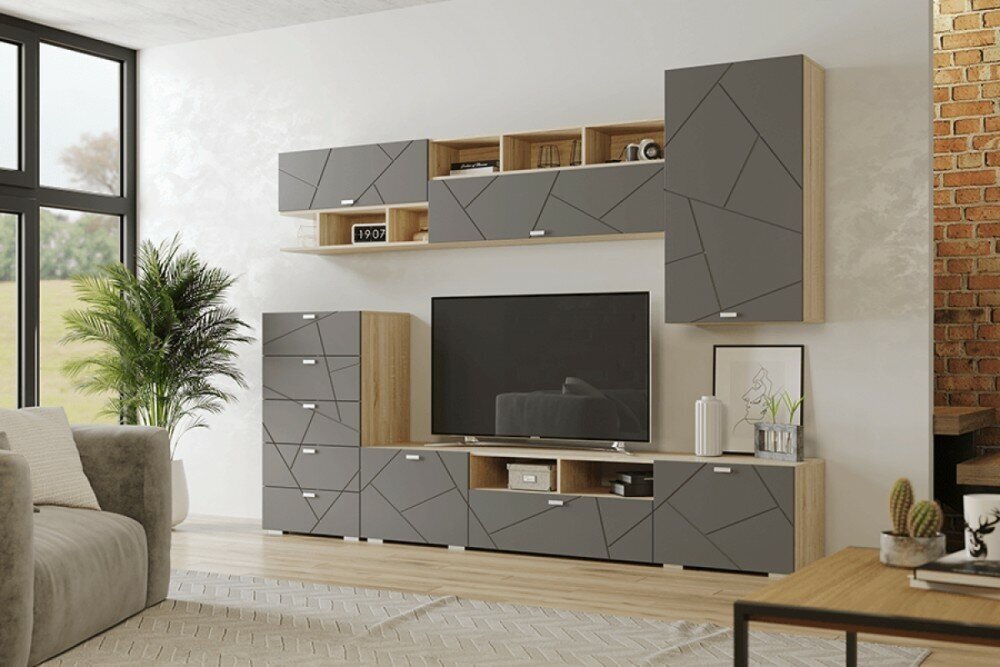 Купить Скайлайн Тумба под ТВ с 1 ящ. и 2 дв. (2100) дуб сонома-графит