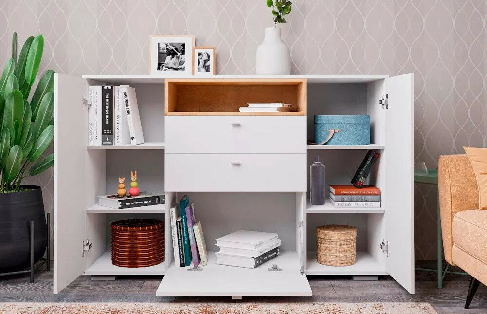 СохранитьМС Ланс Комод К303 Белый (для одежды, под телевизор, с ящиками, с полками, большой, лофт, вместительный) интересное: