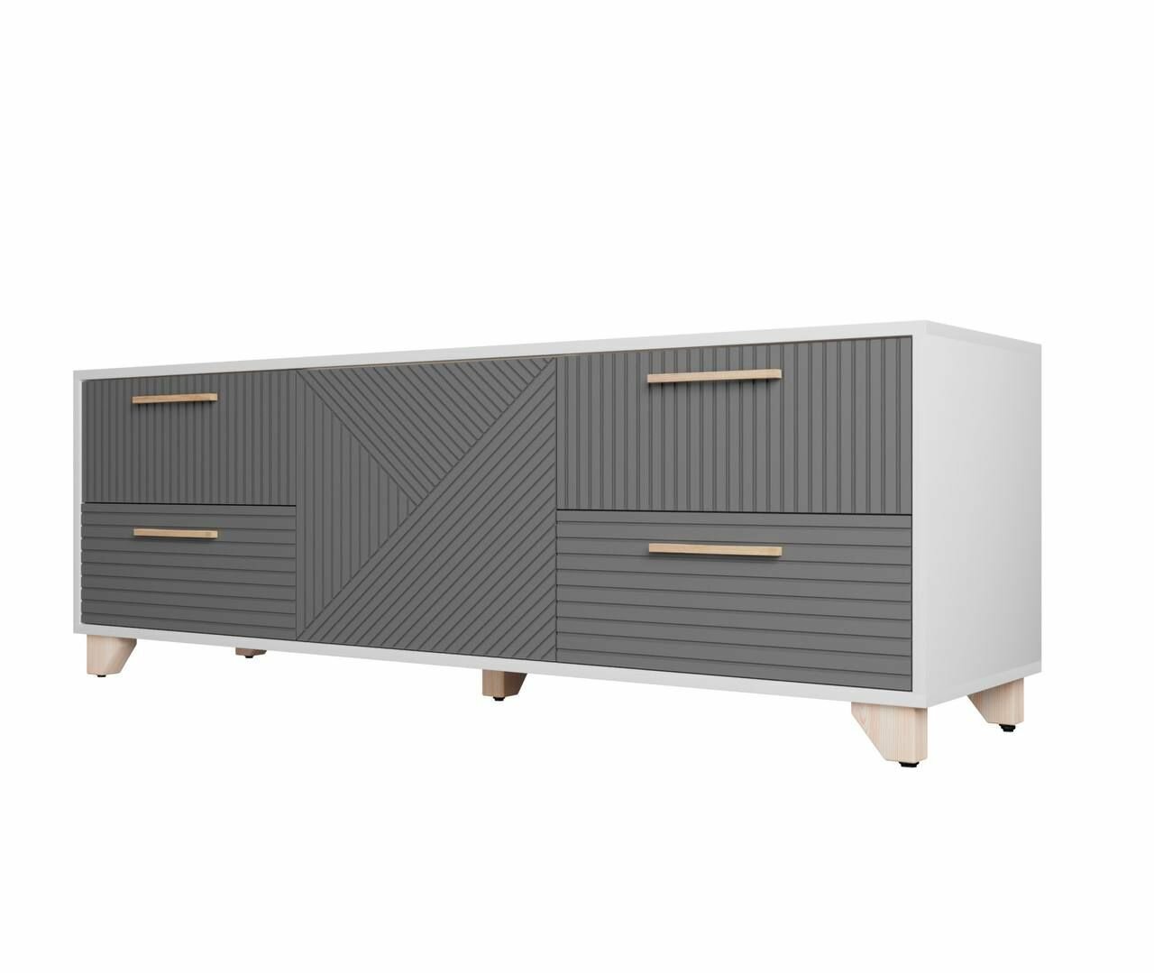 Купить Тумба под телевизор Копенгаген со створкой ЛДСП Белый шагрень / МДФ Серый графит 150х40x50