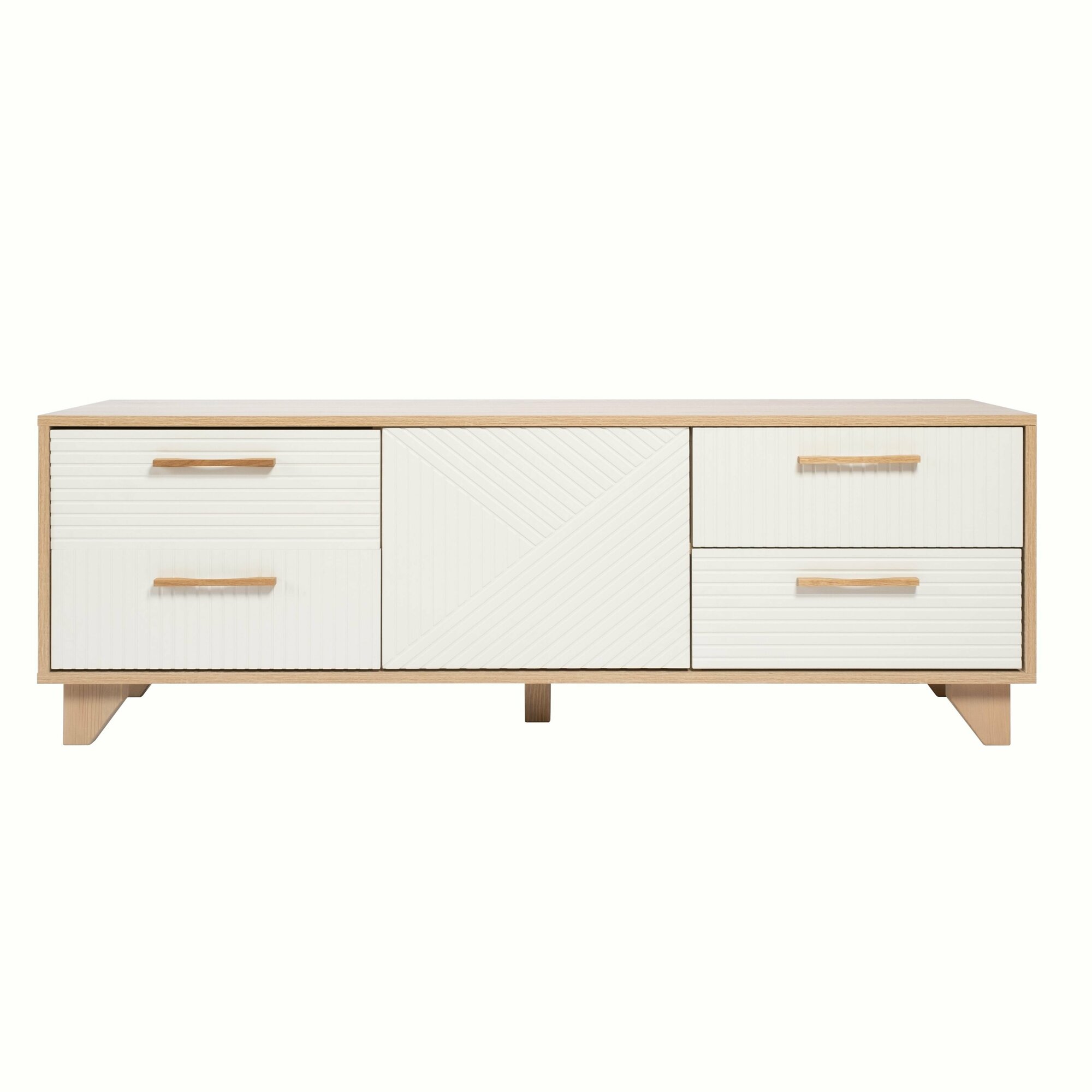 Тумба под телевизор Копенгаген со створкой ЛДСП Белый шагрень / МДФ Белый матовый 150х40x50