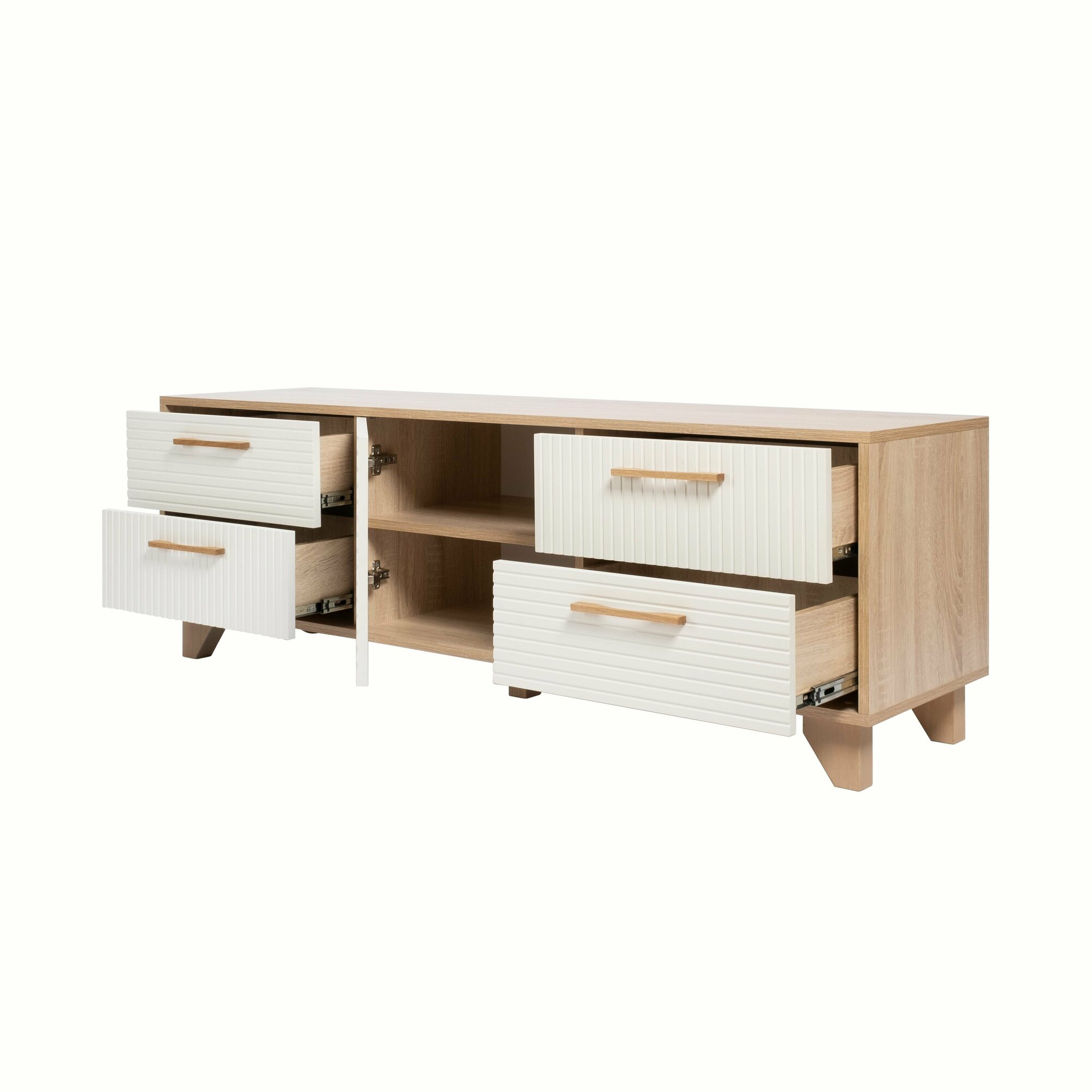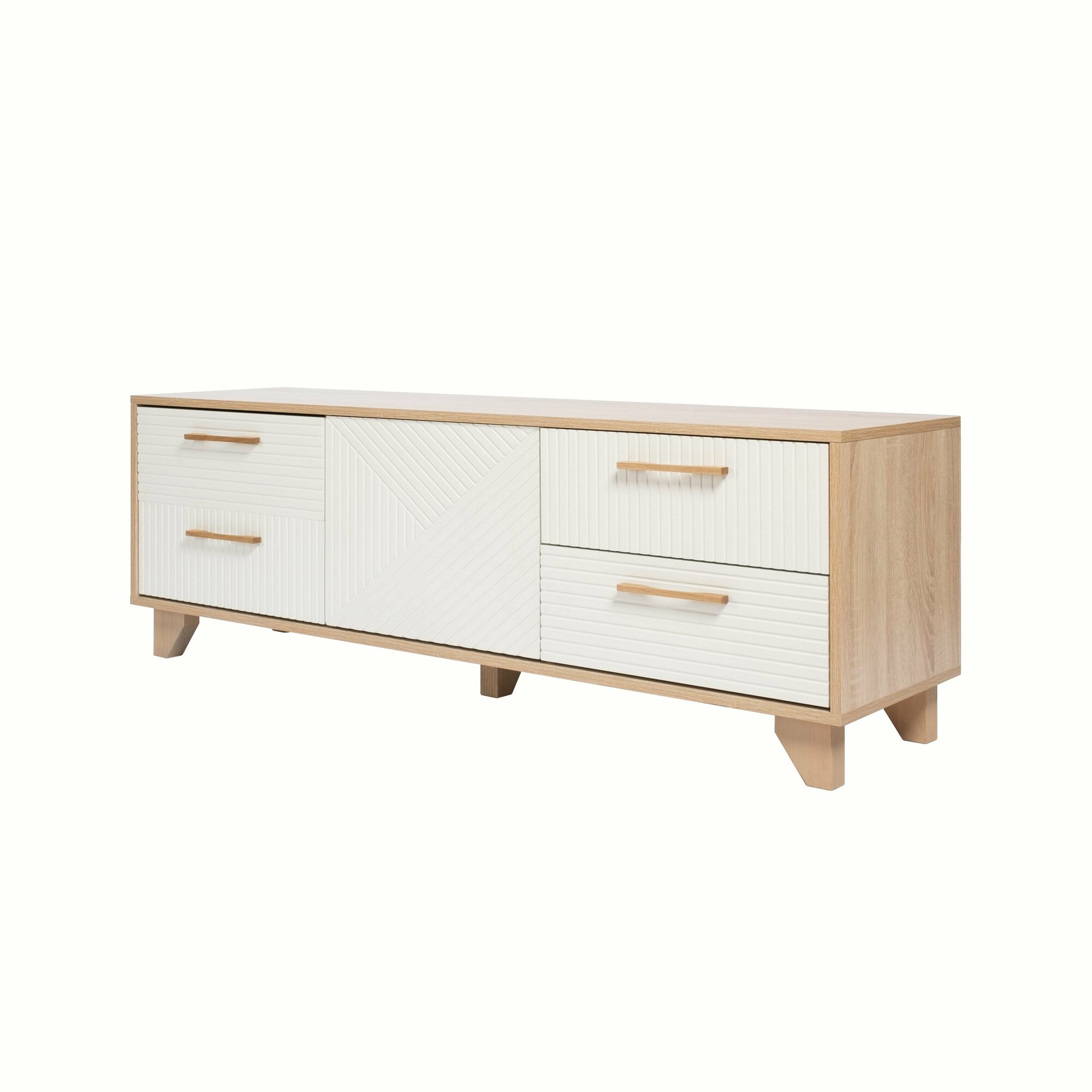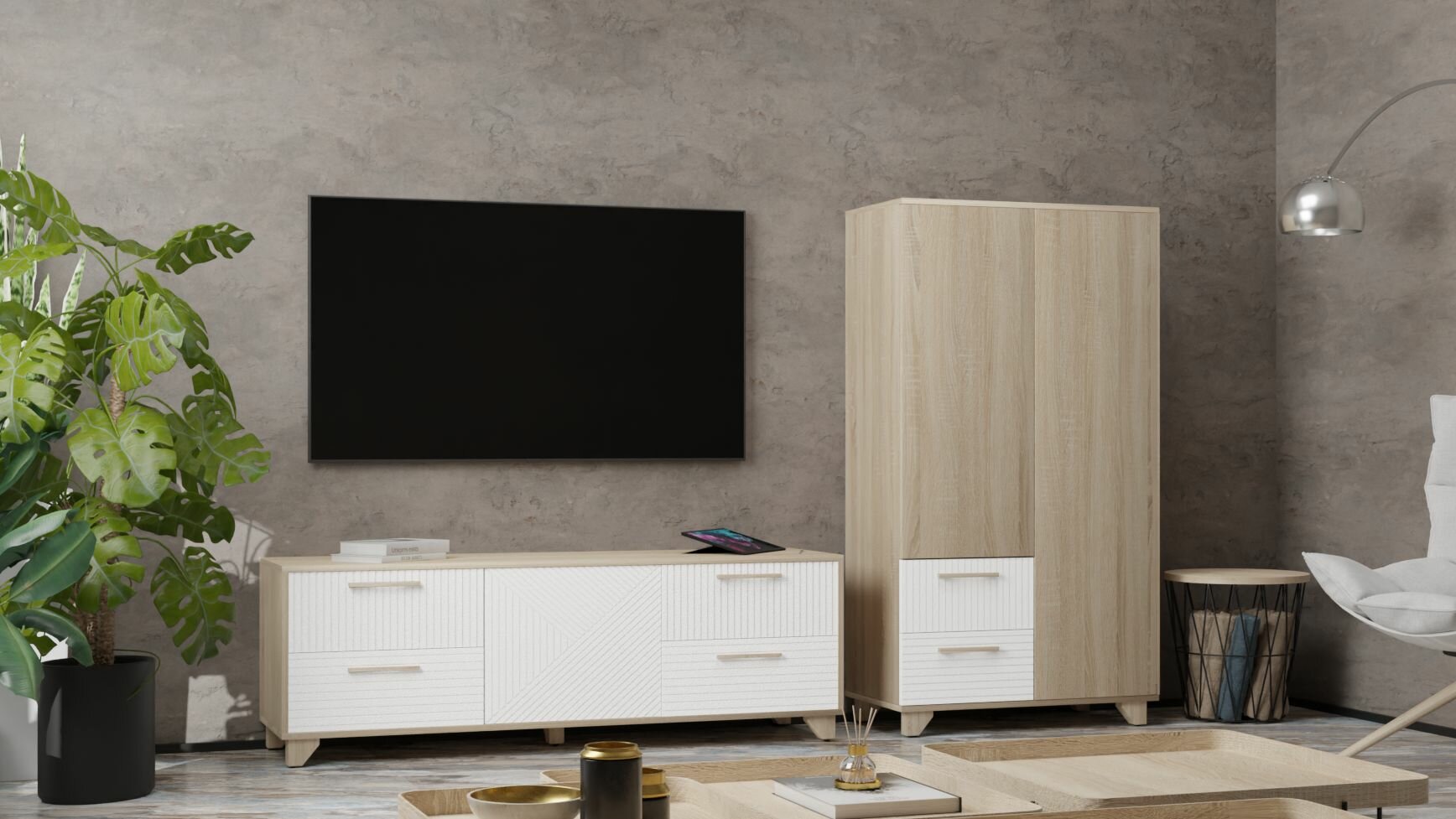 Купить Тумба под телевизор Копенгаген со створкой ЛДСП Дуб сонома / МДФ Белый матовый 150х40x50