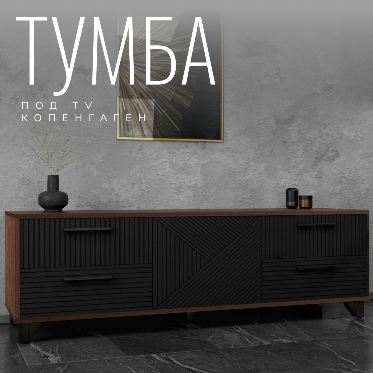 СохранитьТумба под телевизор Копенгаген со створкой ЛДСП Венге / МДФ Черный матовый 150х40x50 интересное: