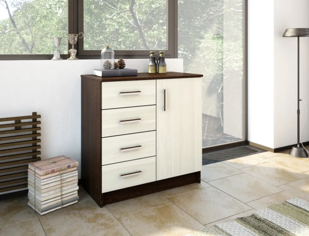 Купить Комод К800-1Д Эра с 4-мя выдвижными ящиками и полкой Венге/Лоредо