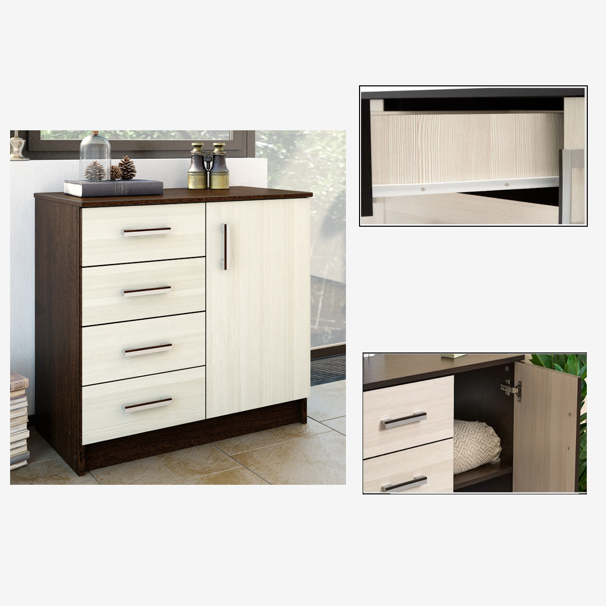 Комод К800-1Д Эра с 4-мя выдвижными ящиками и полкой Дуб Вотан/Белый гладкий