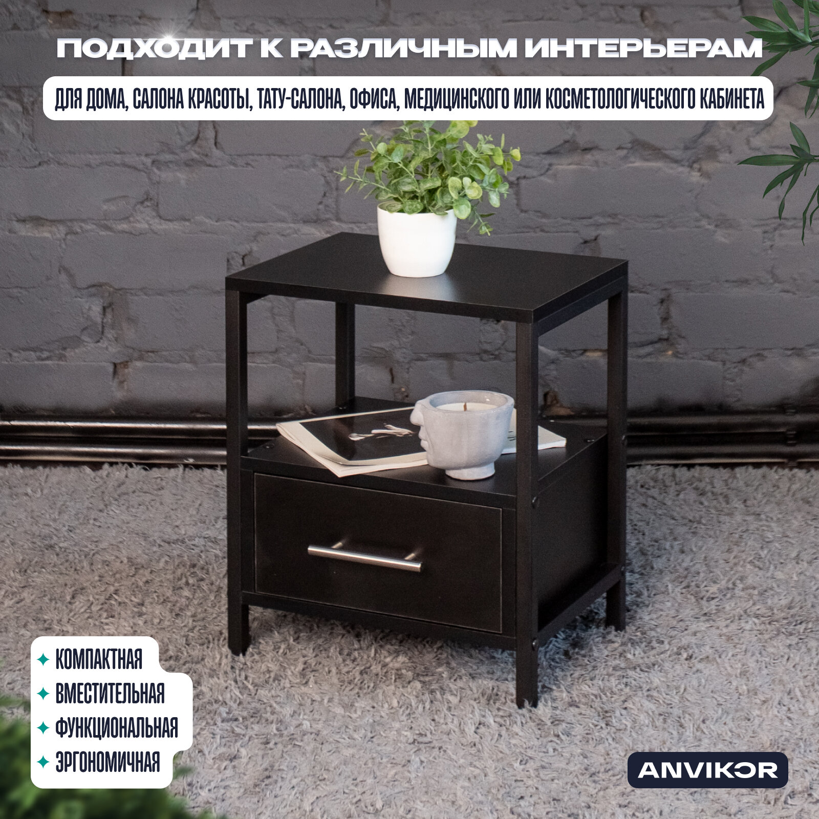 Ниже Вы можете прочитать отзывы на Прикроватная тумба с ящиком и полкой в стиле Лофт Томо черная, ознакомится с подробными характеристиками, посмотреть интересные обзоры и фотографии на Прикроватная тумба с ящиком и полкой в стиле Лофт Томо черная.