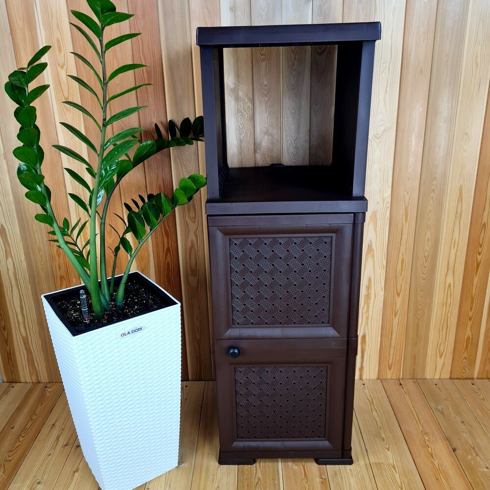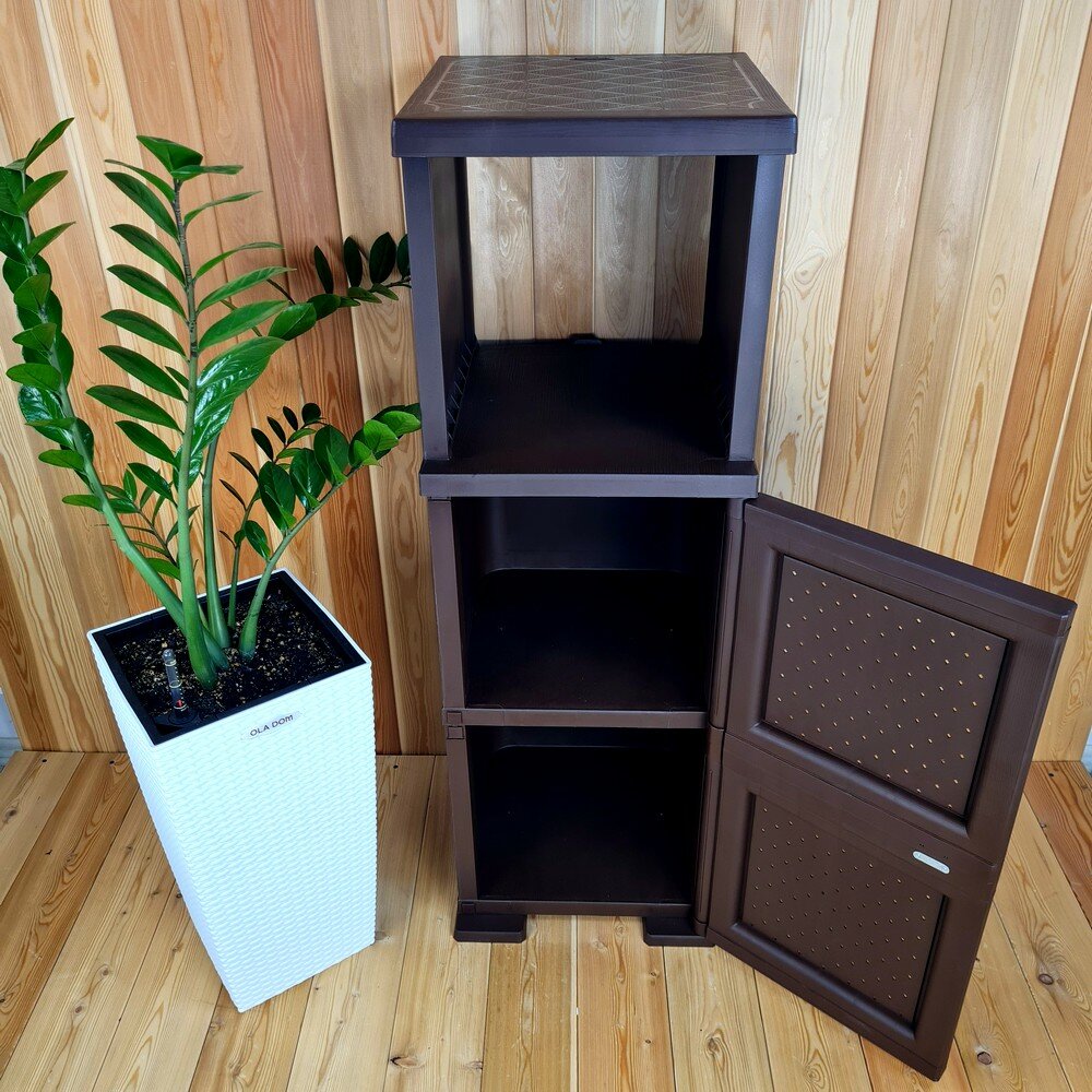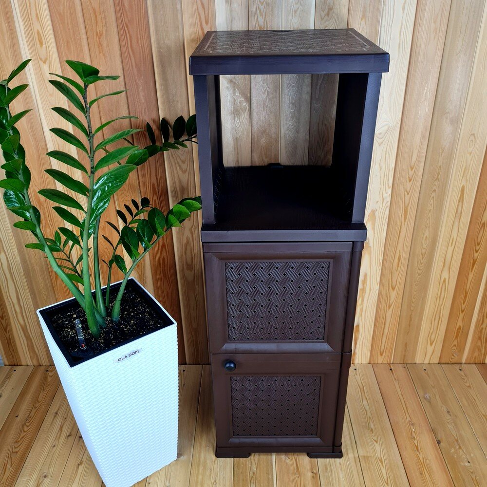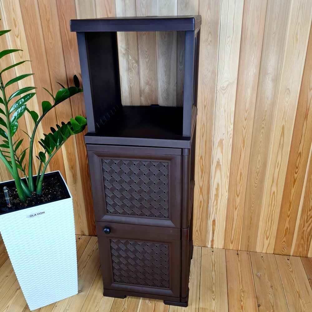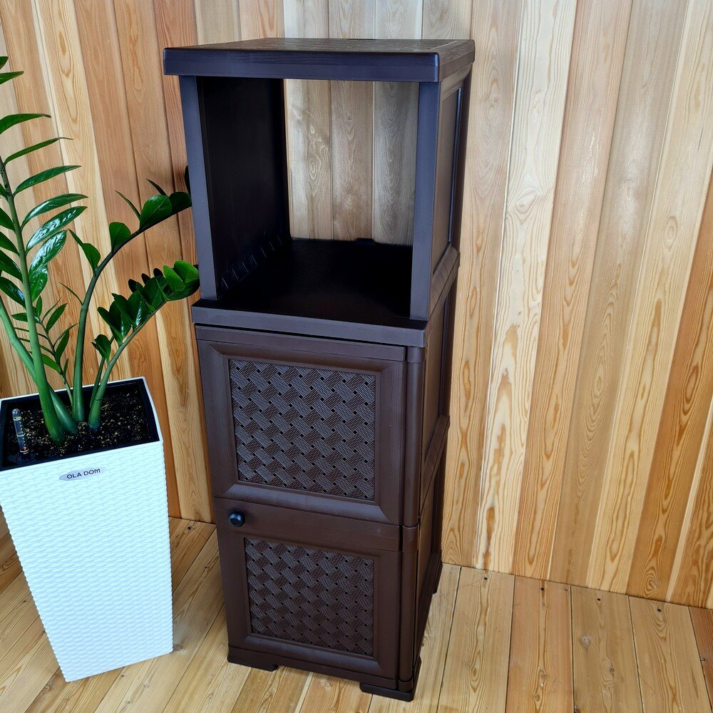 Тумба "УЮТ" пластиковая, усиленная, 40,5х42х122,5 h, 3 этажа, 2 правых плетёных дверцы. Цвет: Коричневый. Арт: Э-178-Д