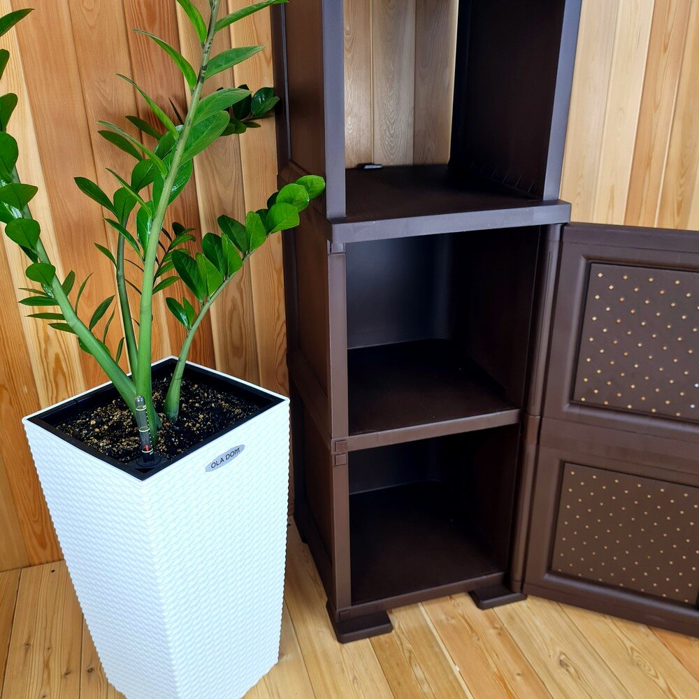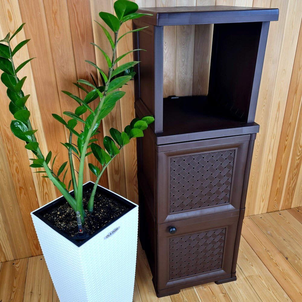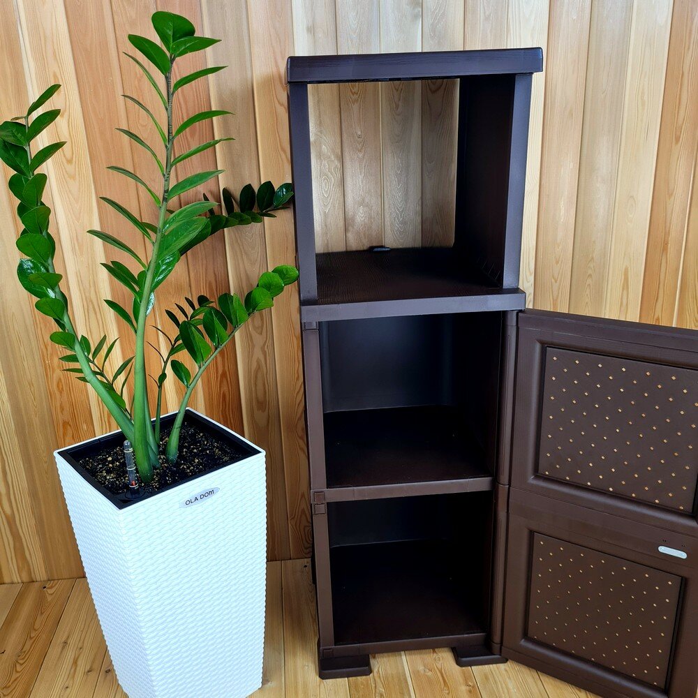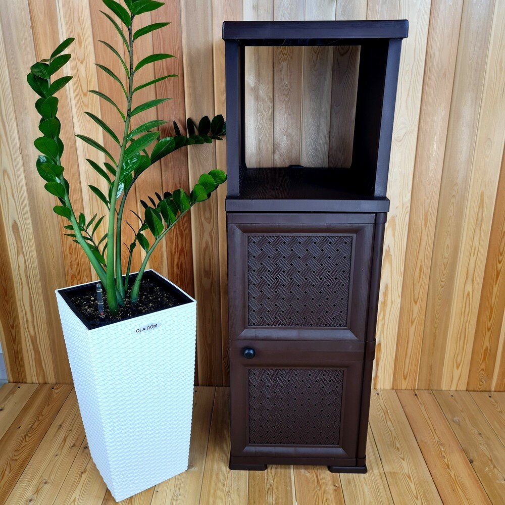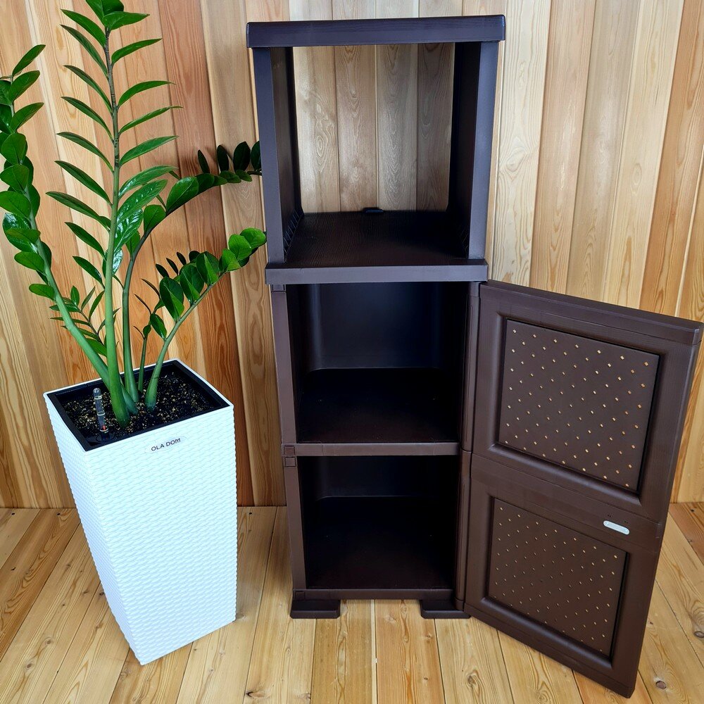 Тумба "УЮТ" пластиковая, усиленная, 40,5х42х122,5 h, 3 этажа, 2 правых плетёных дверцы. Цвет: Коричневый. Арт: Э-178-Д